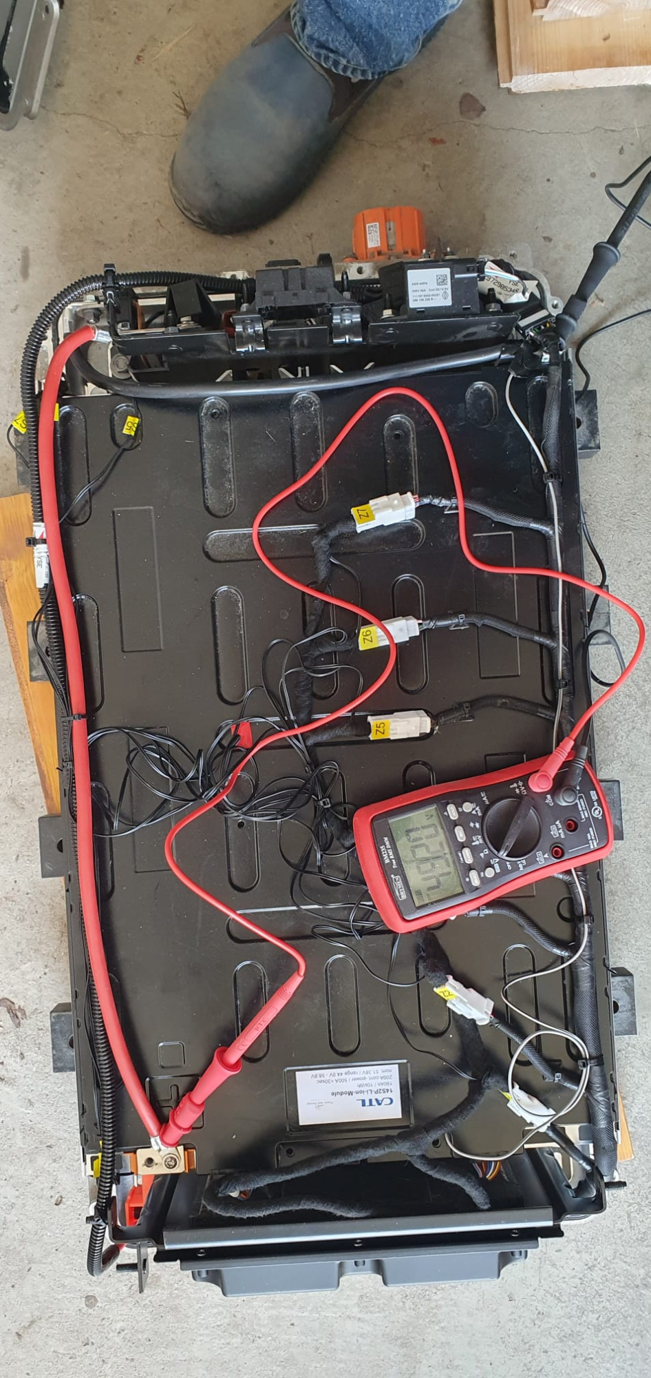 Am BMS Stecker nachgemessen, alle Temperaturen passen, auch die Spannungen steigen von 2 nach unten gehend (laut der Foren-Steckerbelegung) schön um 3.5 bis insgesamt 49V.
