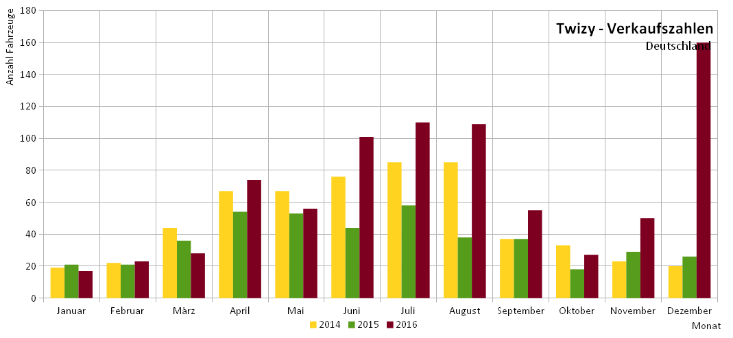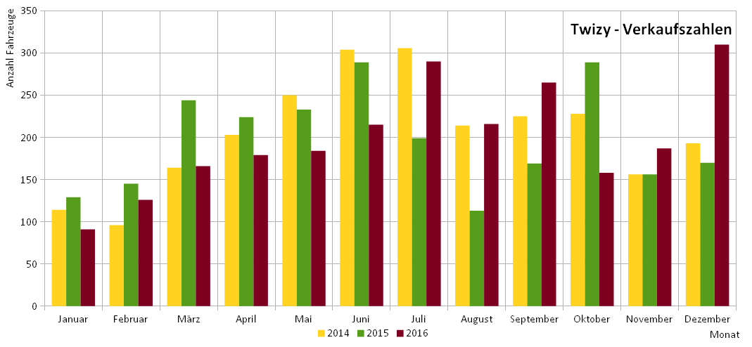 Sehr seltsam finde ich den Dezember-Balken. Soviele Twizys wurden zuletzt im Jahr 2012 in einem Monat verkauft.
