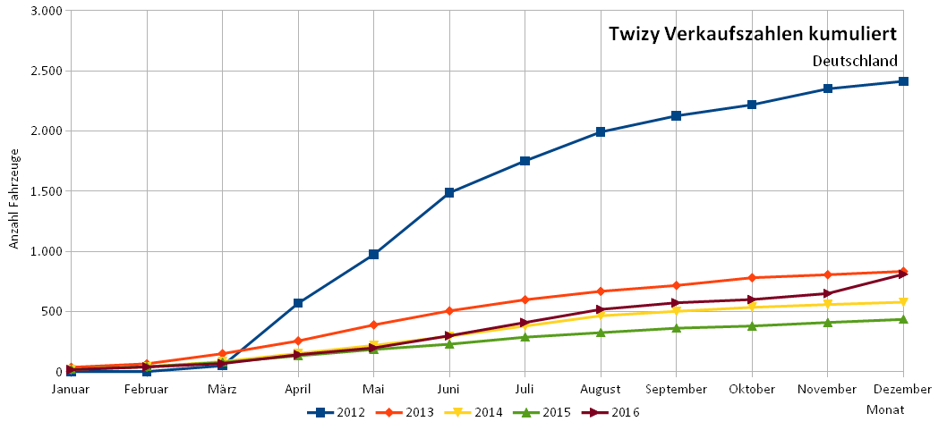 1. du hast den Thread nicht ein wenig zurück verfolgt, sonst hättest du meinen Beitrag von 07. August 2016 (Nr. 112888) gefunden, in dem alle Zahlen seit 2012 auftauchen www.twizy-forum.de/allgemeines-twizy/337...erkaufs-zulassungszahlen?start=30#112888