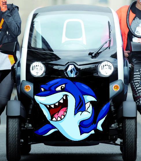 dazu ein Twizy Clipart mit Hörnern und Zahnmaul...