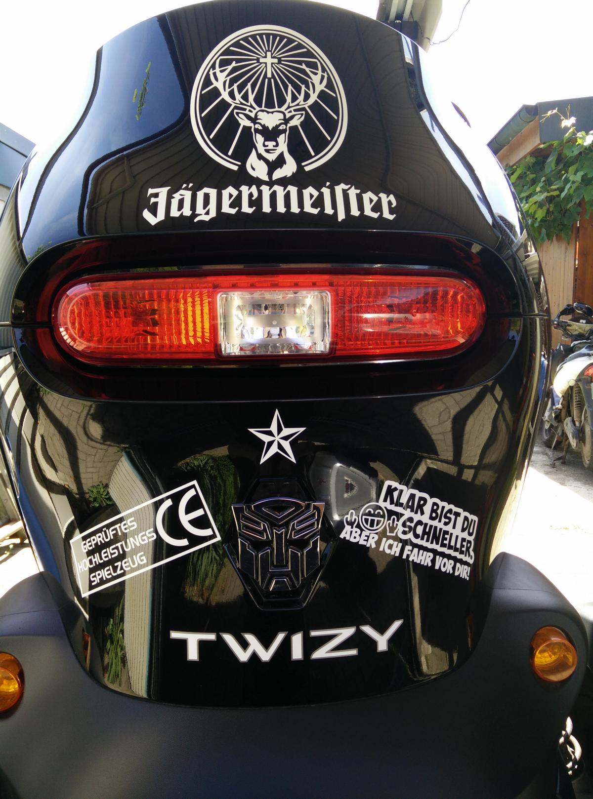 Das testen wir am 8.4. mal, mal einfach über die Raute am Twizy kleben
