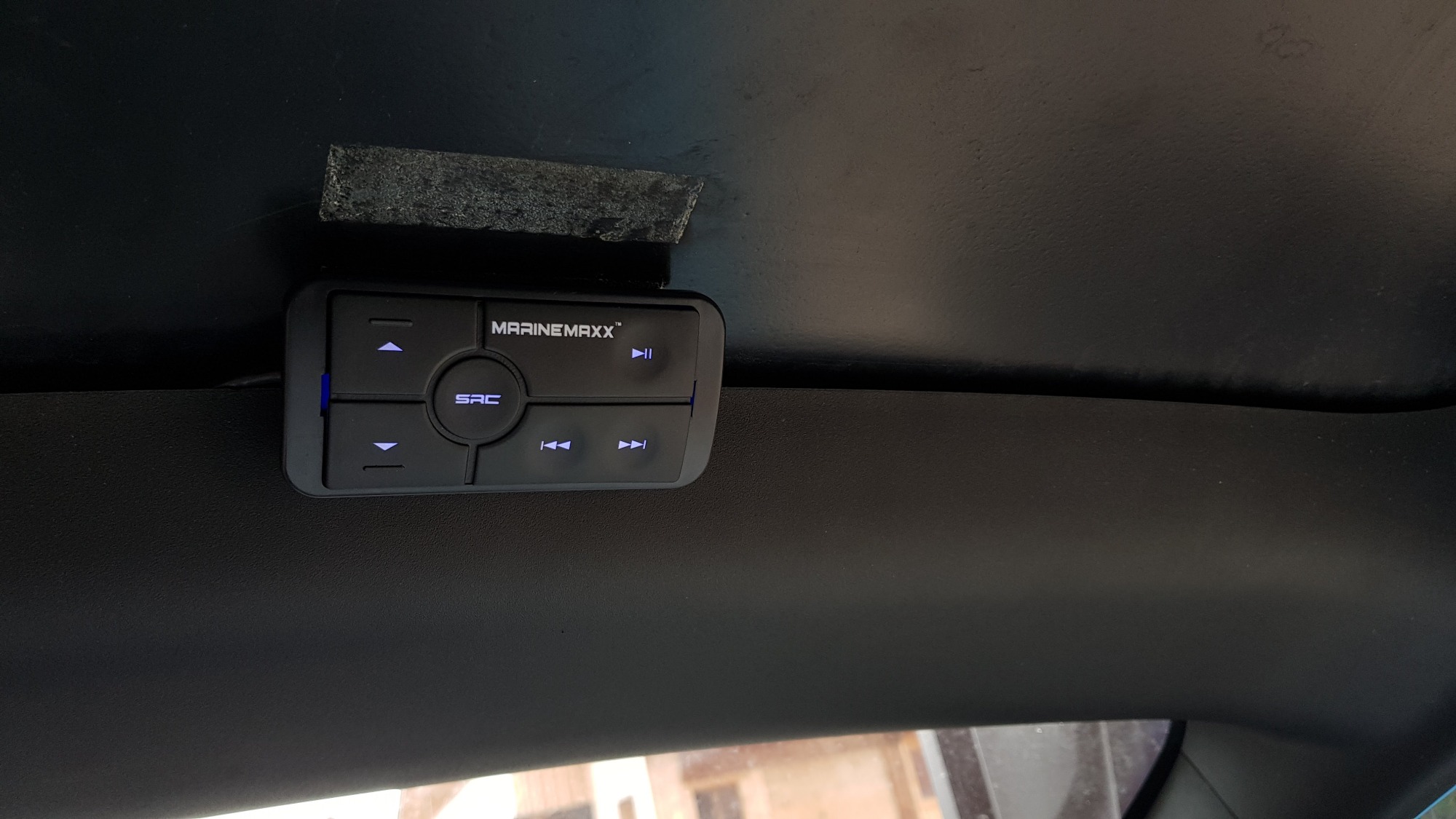 Verstärker mit Bluetooth und Köpfhörerschnittstelle (im Handschuhfach) von Marinemaxx, leuchtet blau when Quelle Bluetooth und rot wenn Klinke.