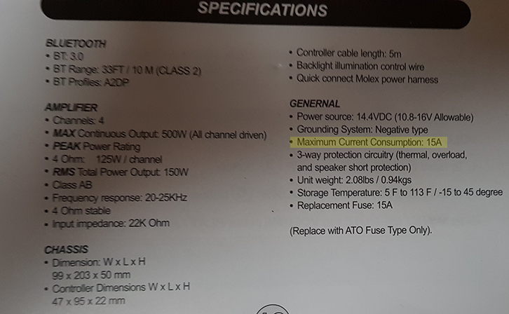 Find ich lustig lt original Beschreibung hat der 500Watt Verstärker einen Stromaufnahme von