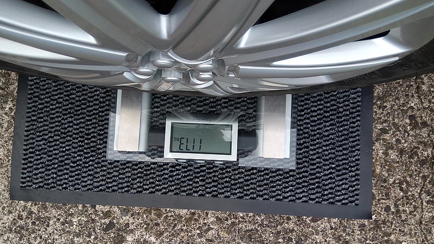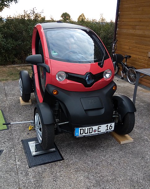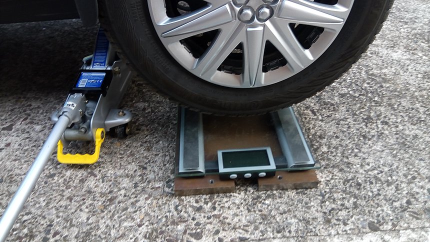 Das Verfahren ist das Folgende: Twizy mit dem Wagenheber anheben und alle vier Räder auf Bretter stellen. Dann immer ein Rad anheben, und statt des Brettes eine Personenwaage unterschieben (Bild-01). Das Gewicht des Twizy ist dann die Summe der vier Einzelmessungen. Haben bestimmt schon einige hier gemacht...
