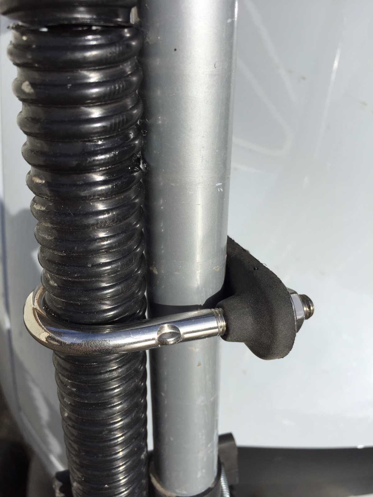 Die Klemmverbindung zwischen dem Träger und der Quetstange wurde durch Niroschraube ersetzt, Verstellungsmöglichkeit hier ist ja nicht notwendig