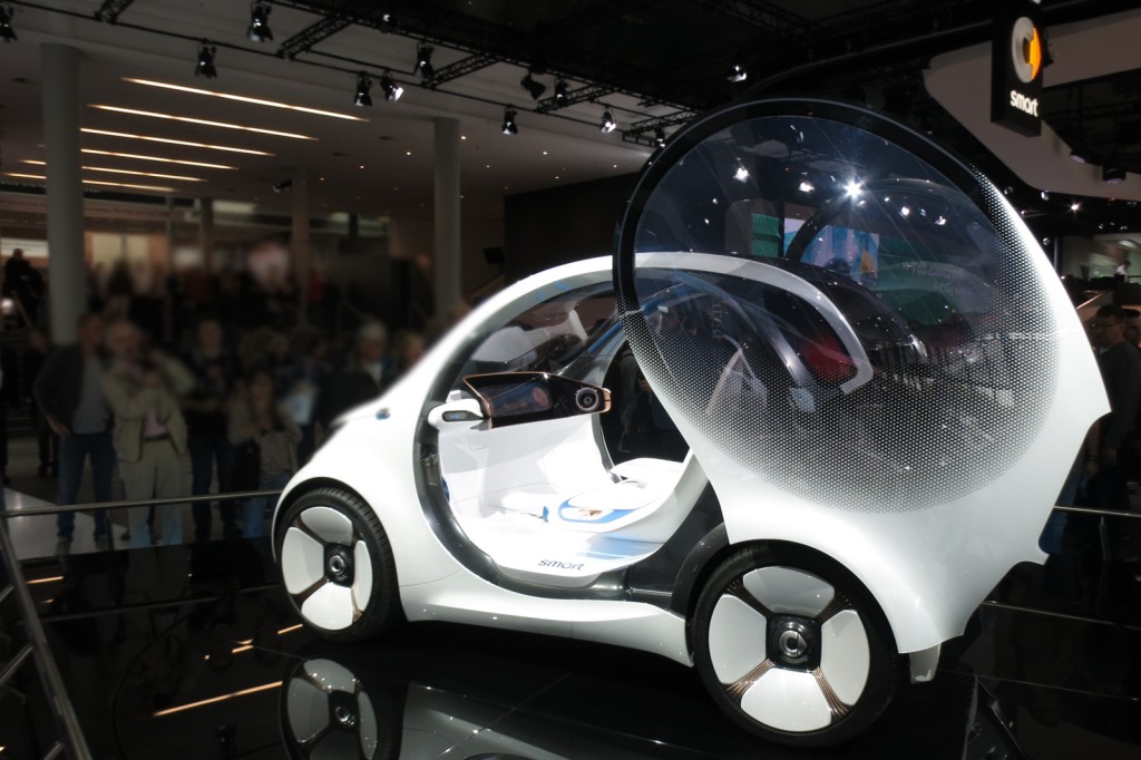 Allerdings auch ein Lichtblick, eine Smart-Studie am Daimler-Stand. Hätte ich gleich mitgenommen, leider aber auch ein autonomes-Fahrzeug ohne Lenkrad. Aber das Design gefällt mir sehr gut (warum wohl?