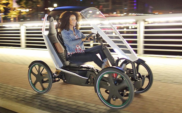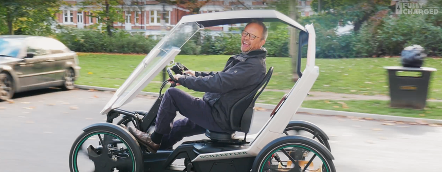 Geladen wird das Fahrzeug an der Steckdose, durch das strampeln lädt man mit einem Generator den Akku um die Reichweite etwas zu erhöhen (Dauerleistung 70 - 200 Watt, arg weit kommt man damit nicht)