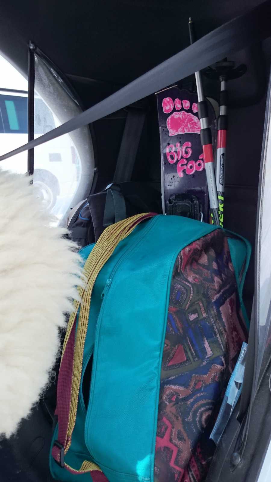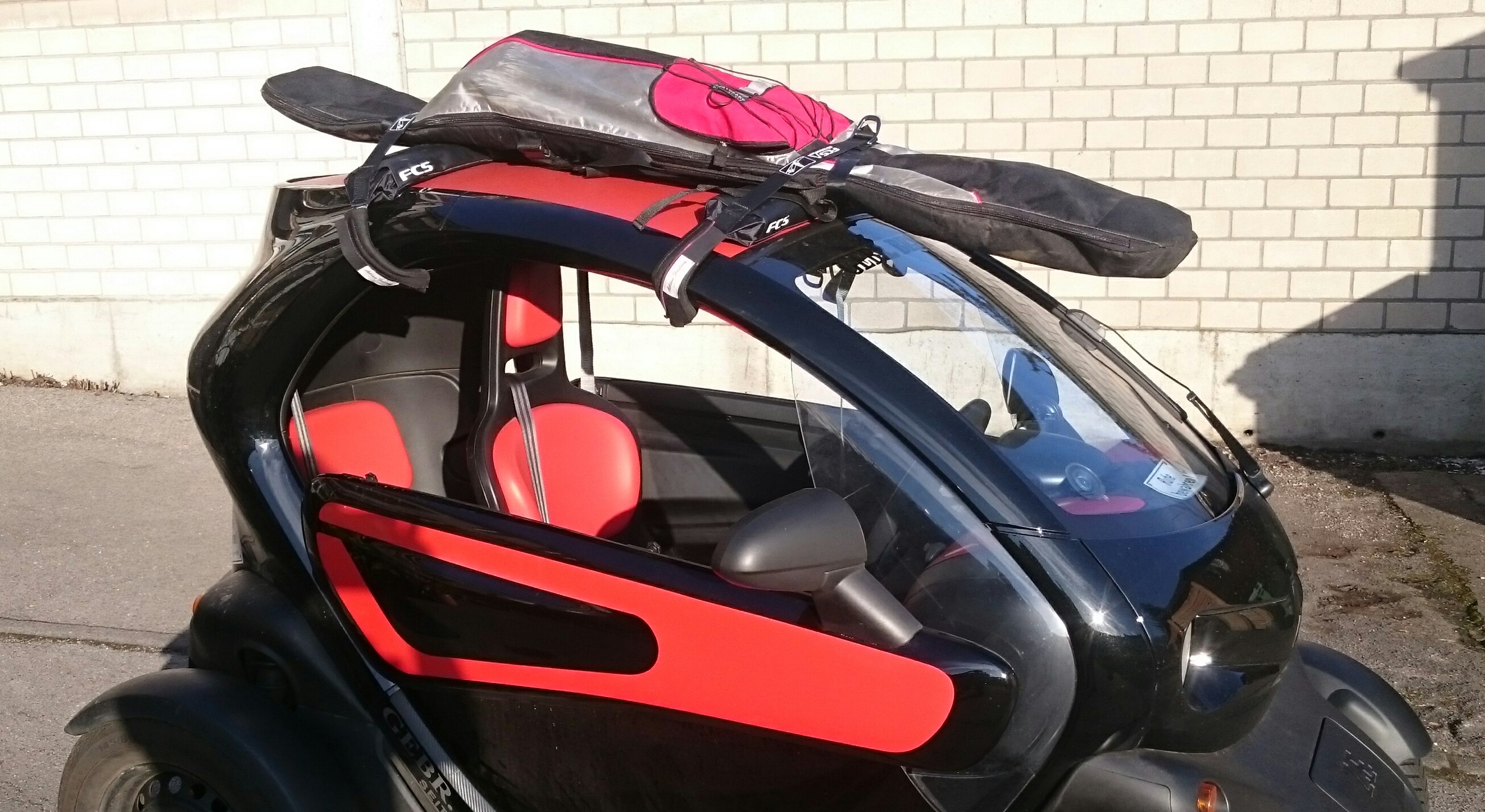 Man bekommt aber auch eine normale Tourenskiausrüstung in den Twizy... die Skier (170cm) passen neben den Sitz, der dadurch Schalensitzcharakter bekommt