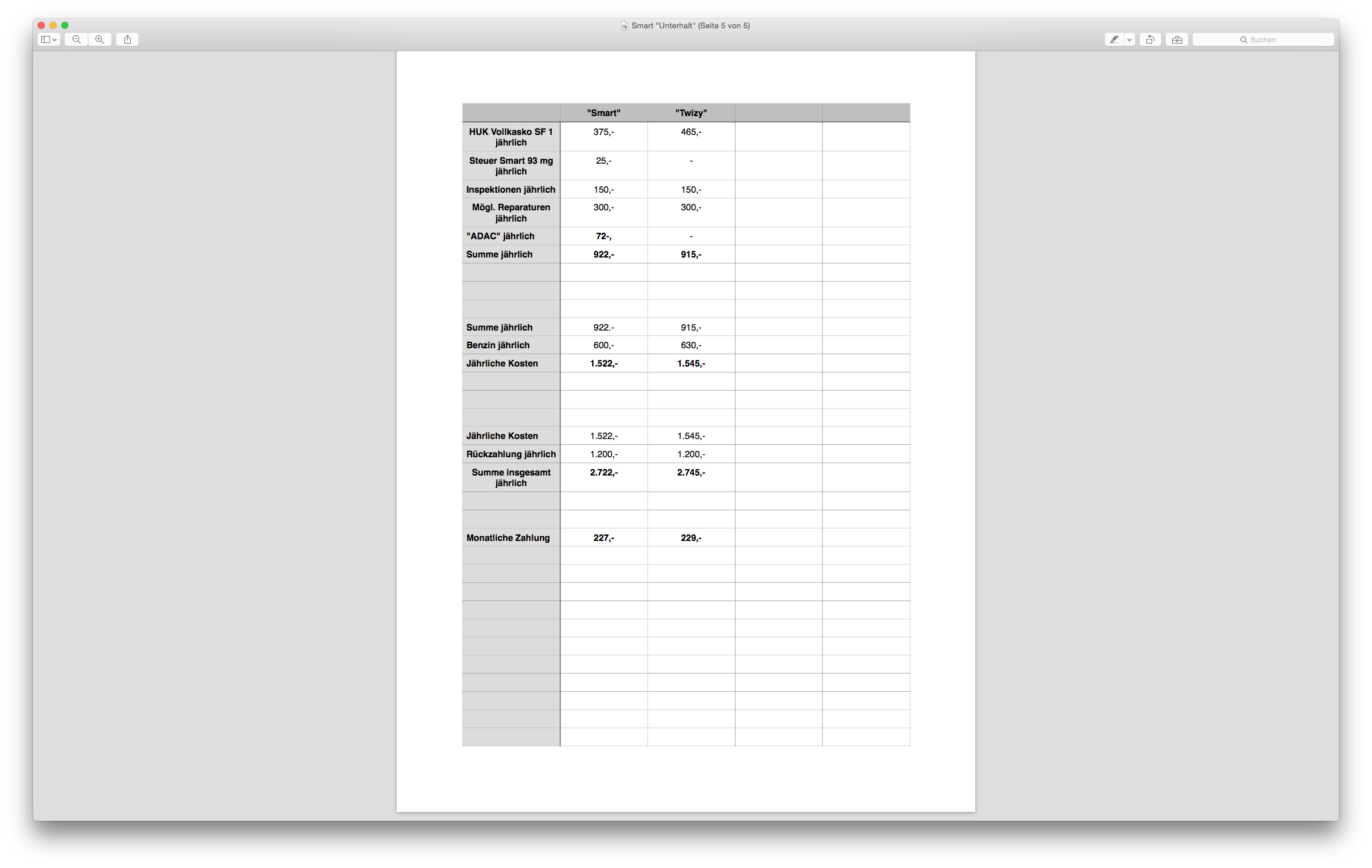 Hier hab ich mal ganz grob über den Daumen versucht, eine nach Möglichkeit eine realistische und genaue Kalkulation für einen "Smart" und einen "Twizy" zu erstellen!