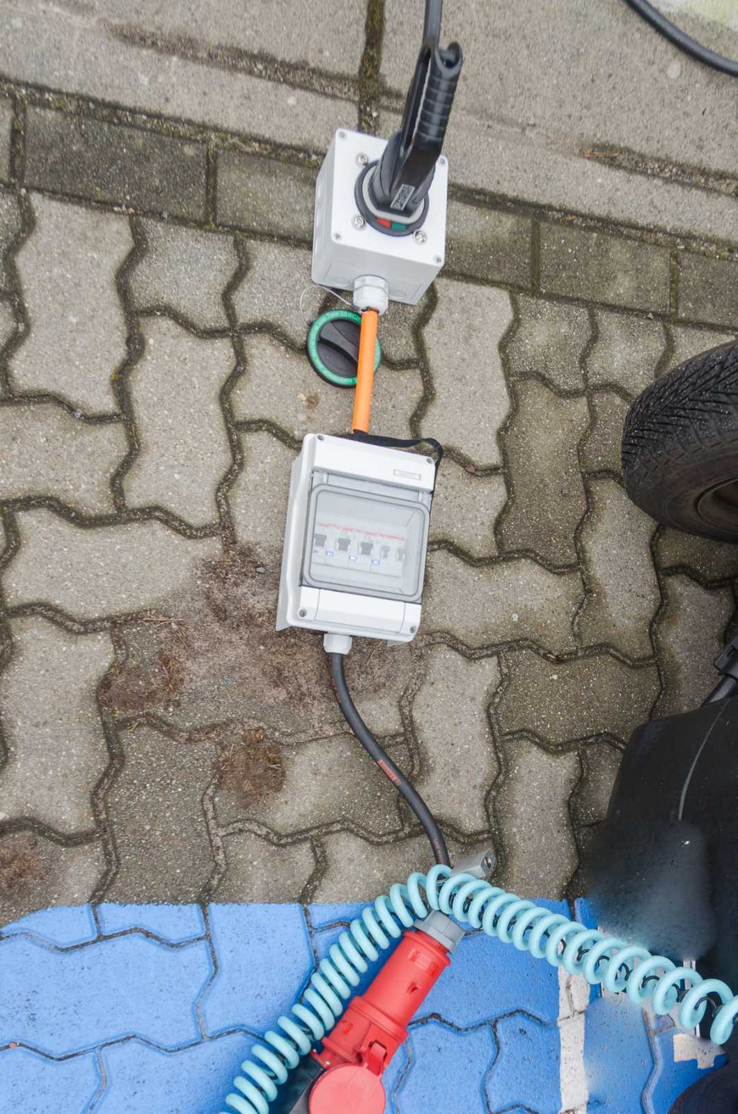 Und für die Abkürzung über die Schnelllader ein Typ2-Dose auf CEE Rot 32A. (Muss sagen ist ein wenig overkill, aber was tut man icht alles um es aus Brandenburg rauszuschaffen