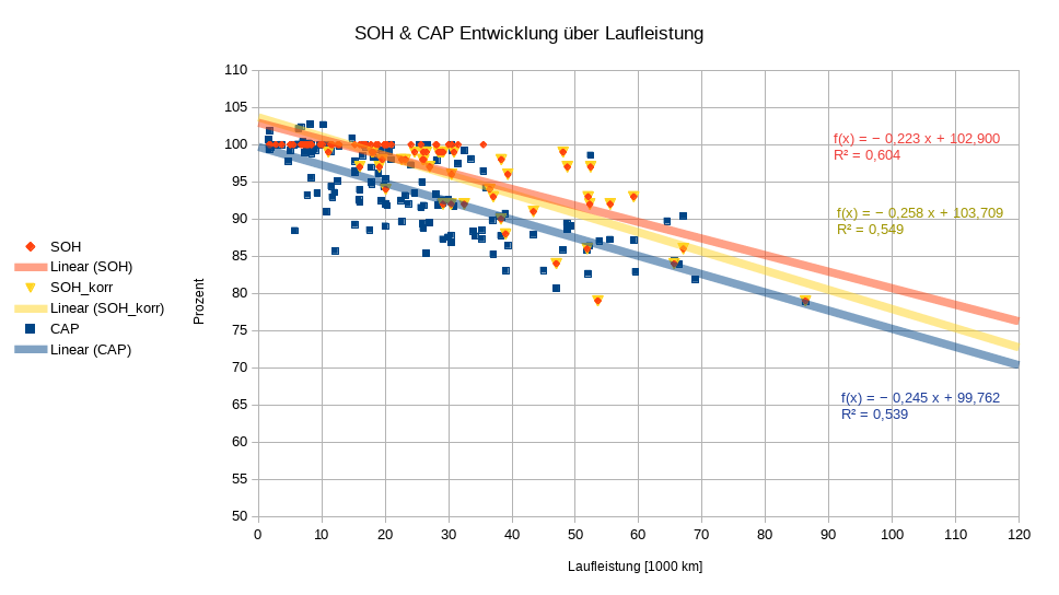 Der lineare Trend ist natürlich Quatsch beim SOH, aber der einzig sinnvolle Anhaltspunkt für Vergleiche. Bei der CAP funktioniert der lineare Trend.