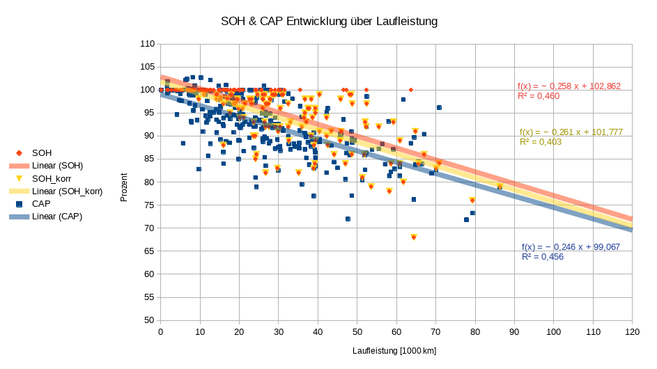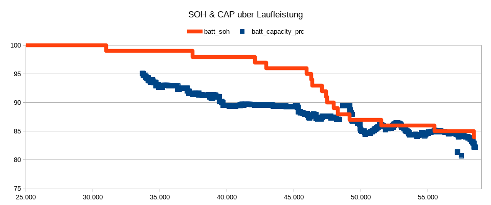Da gab es Phasen mit grassierendem SOH-Verlust und dann wieder ist er über mehrere tausend Kilometer wie eingefroren.