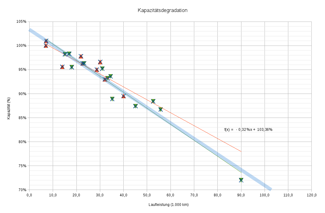 Habe 70Nm Normaltuning. Bei mir kommen die 3,2% Kapazitätsverlust/10000km exakt hin, und ich plane die 70000km in 3 Jahren zu knacken!