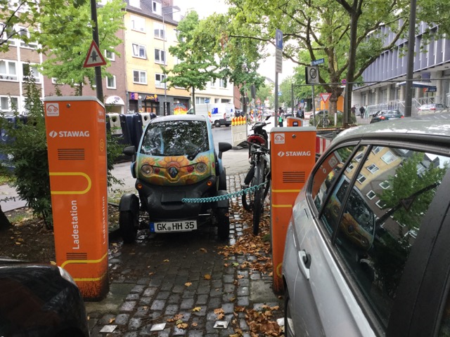 Ich hatte letzte Woche folgendes Erlebnis: War in Aachen und habe mich gefreut, direkt in der Innenstadt eine freie Ladesäule zu finden. Ok, die beiden Autoplätze waren mit Benzinern belegt, aber der Twizy ist klein und dünn und paßte auf einen Motorradplatz.