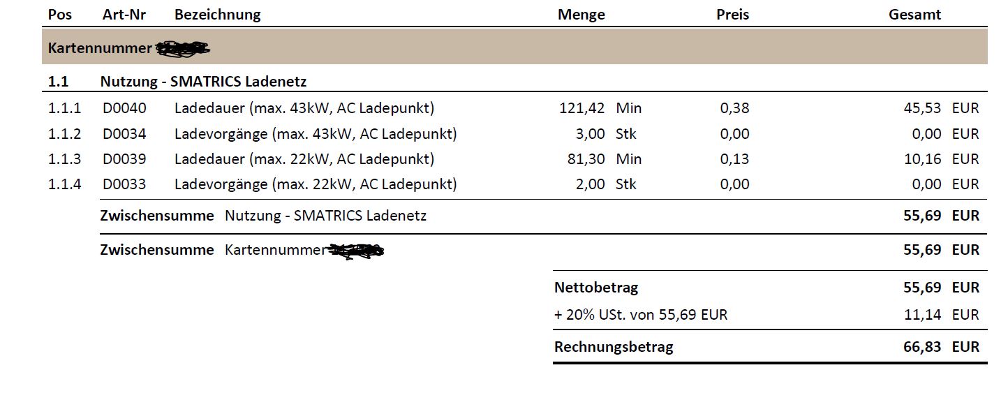 17.08 war in etwa die gleiche Strommenge, allerdings für ca. 2/3 des Preises von München. Schon ein deutlicher Unterschied, aber akzeptabel, da der Verbrauch berechnet wird und nicht die Ladedauer.