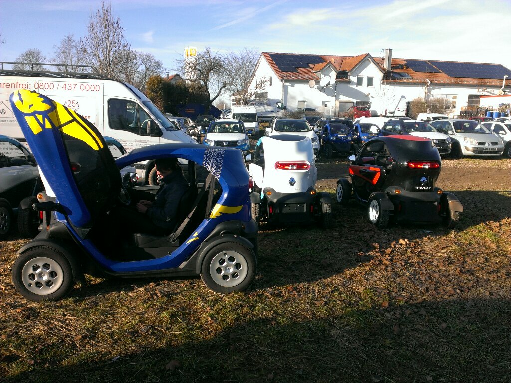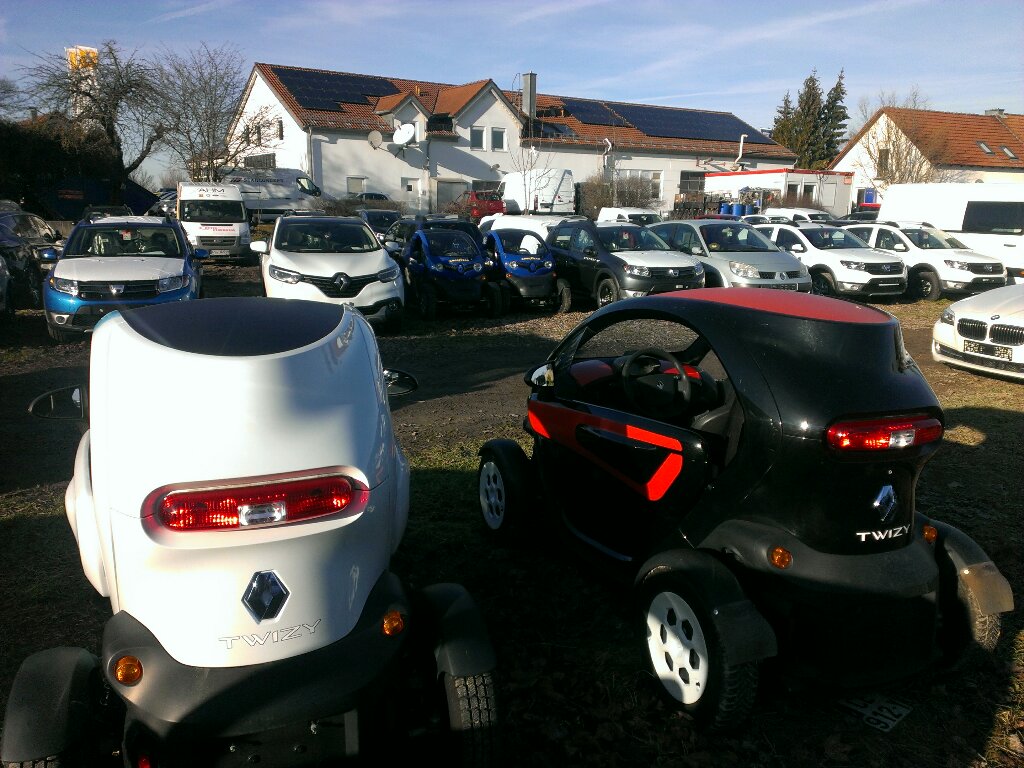 Ich habe mir die Twizy's mal genauer angeschaut und es sind ehemalige Miet-Twizy's aus Frankreich. Wenig km aber ziemlich runtergerockert. Technisch scheinen sie OK zu sein (Bremsen, was ich sehen konnte). Sie haben aber teilweise hässliche selbstgebastelte Schmutzfänger und hinten Löcher wegen irgendwelche Gepäckträger o.ä. Leider alles nichts für uns. Bei dem aktuellen Neuwagenrabatt von Renault sind sie mir dann doch zu teuer.