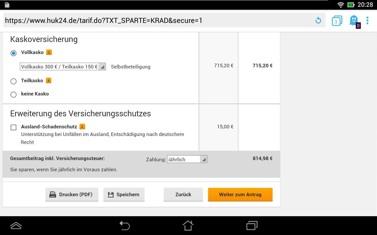 M UC 334 schrieb: Kannst ja auch mal beim schöll nachfragen ( link links), ich zahl Haftpflicht und TK 38€ und VK 142€ ....Selbstbeteiligung 150€/300€ bei SF 5.