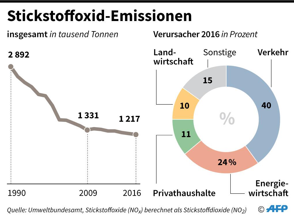Die Grenzwerte für Stickstoffdioxid (NO2) gelten in der EU seit 2010 - der Jahresmittelwert darf 40 Mikrogramm pro Kubikmeter in der Außenluft nicht überschreiten.