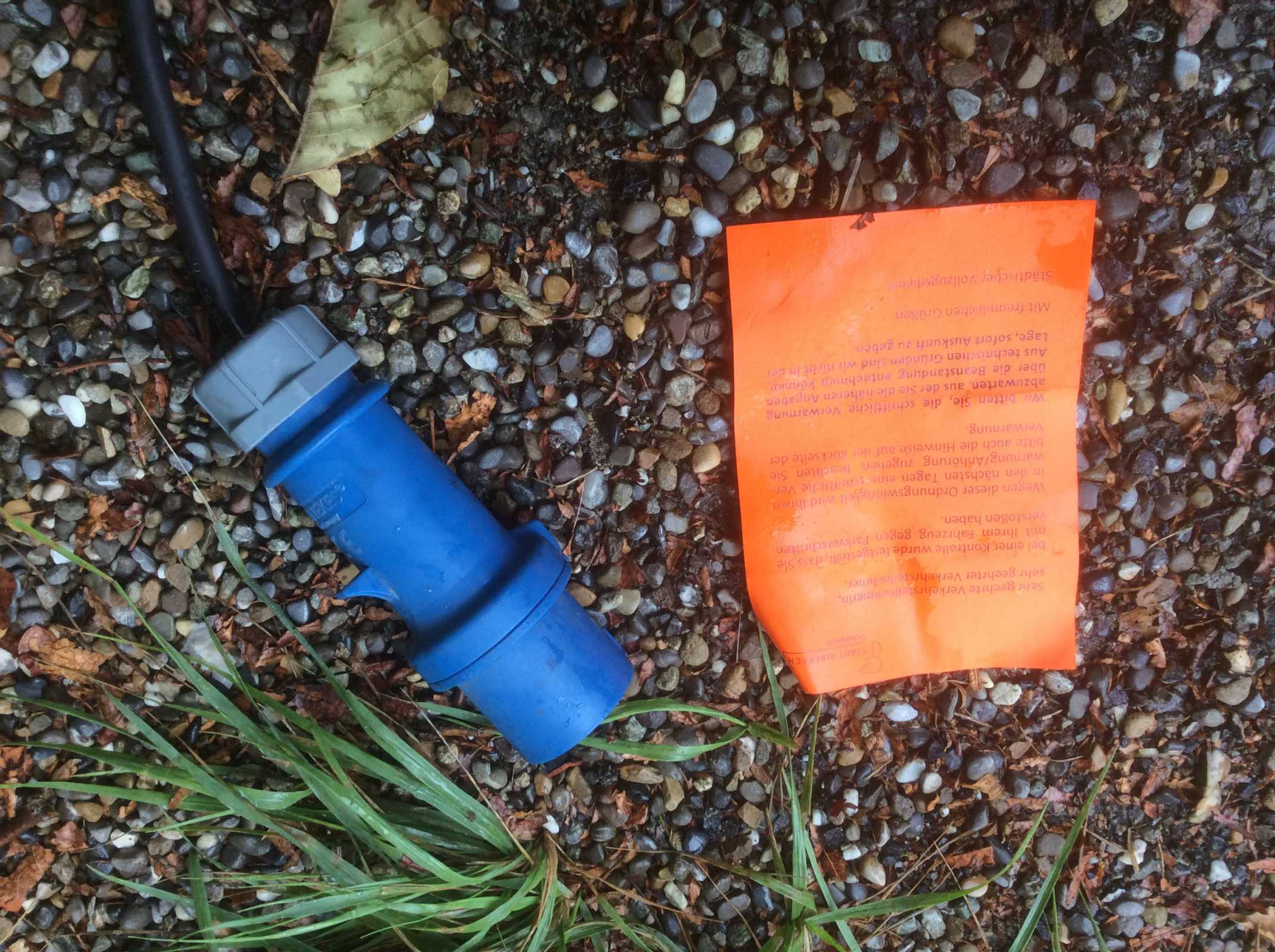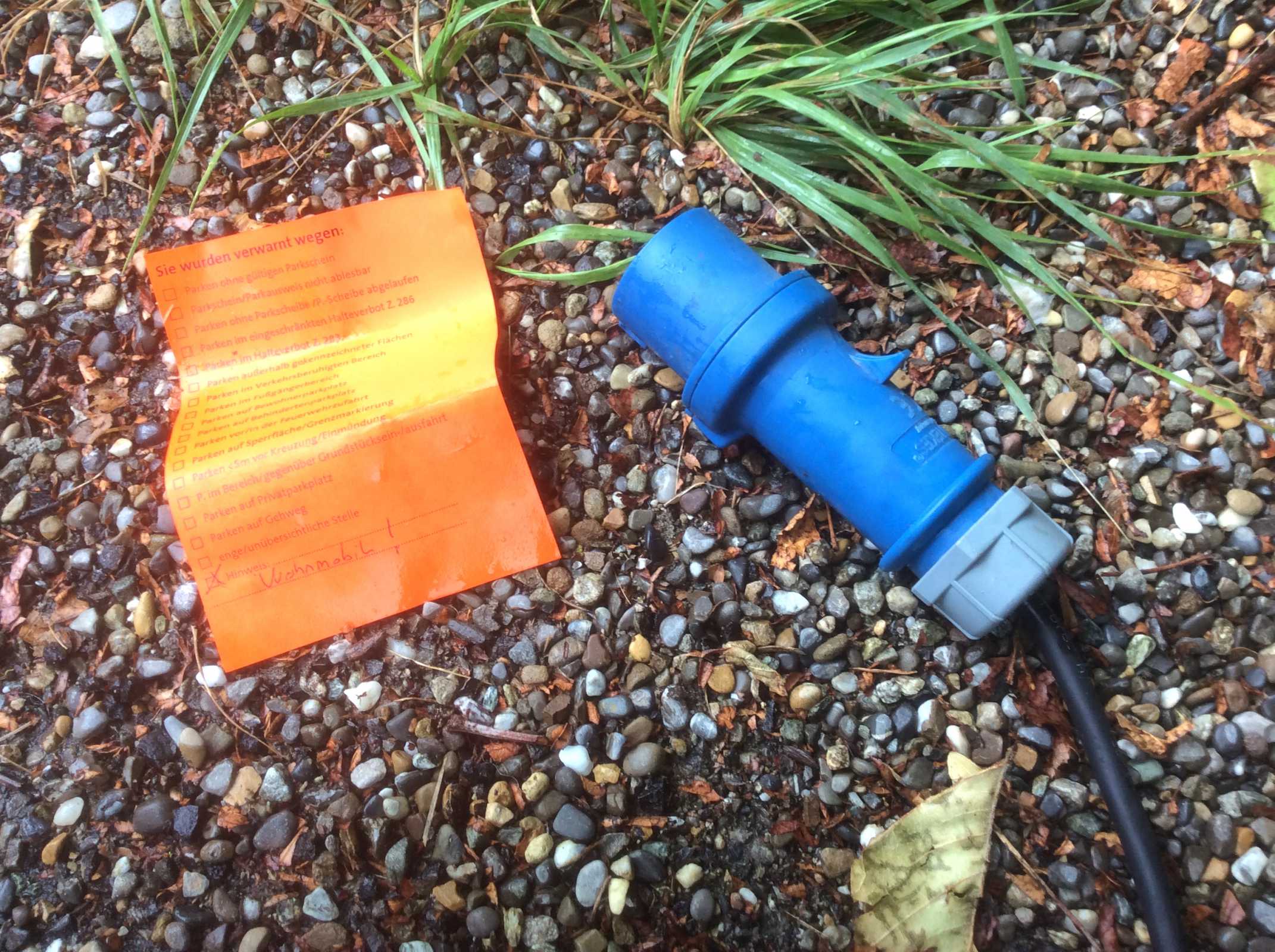 Als ich mit den Leuten sprach zeigten die mir den an den Twizy angehängte Zettel vom Städtischen Vollzugsdienst (Ordnungsamt) der Stadt Biberach: "Sie wurden verwarnt wegen: Hinweis: Wohnmobil"