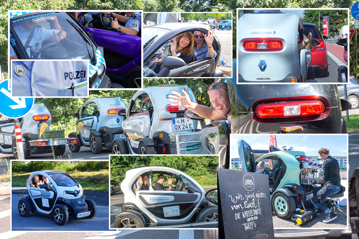 darauf zu sehen sind ausschließlich seeehr freundliche Twizy-Fahrer, natürlich darf auch der Espressizy nicht fehlen.