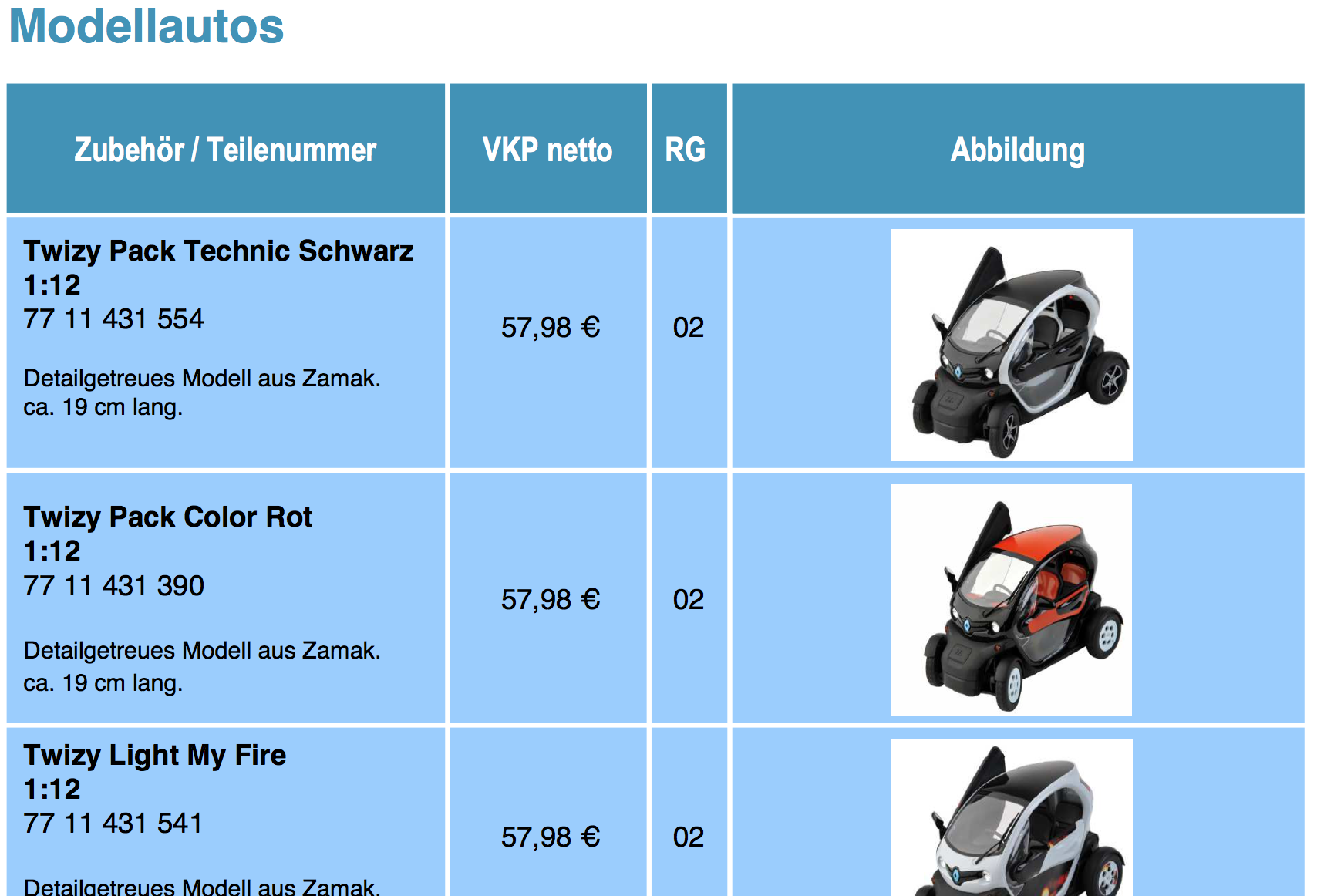 Twizy Modellauto 1:18 aktuell bei ebay für €13,99