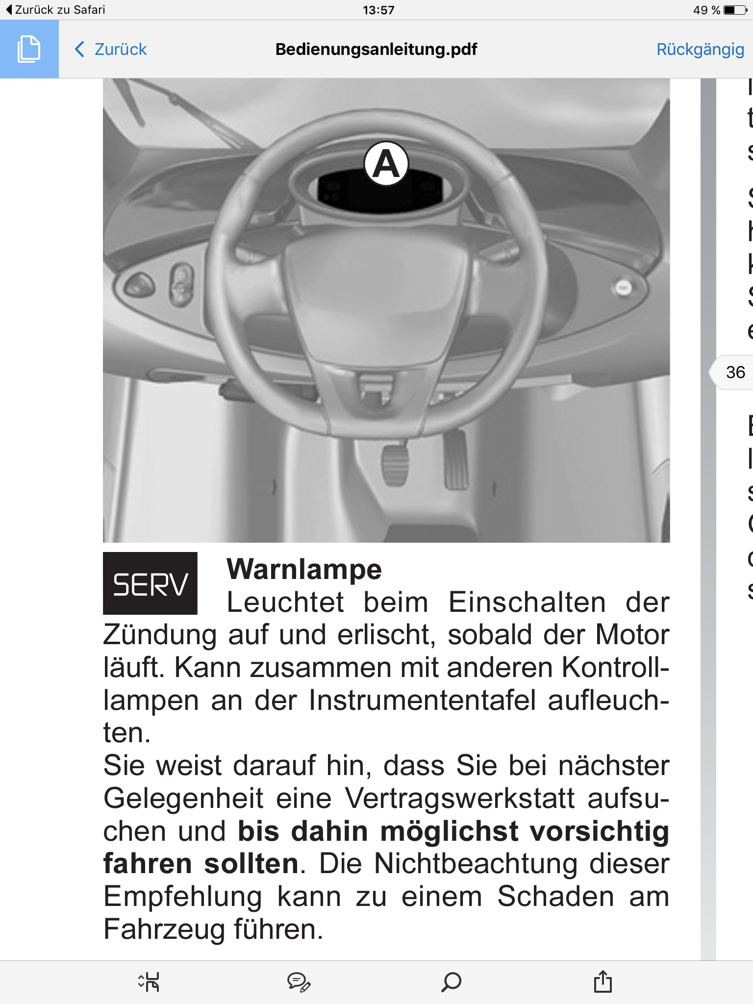 Zusätzlich ist nun aber die SERV-Lampe und will nicht ausgehen! Auch nicht bei einer erneuten Probefahrt.