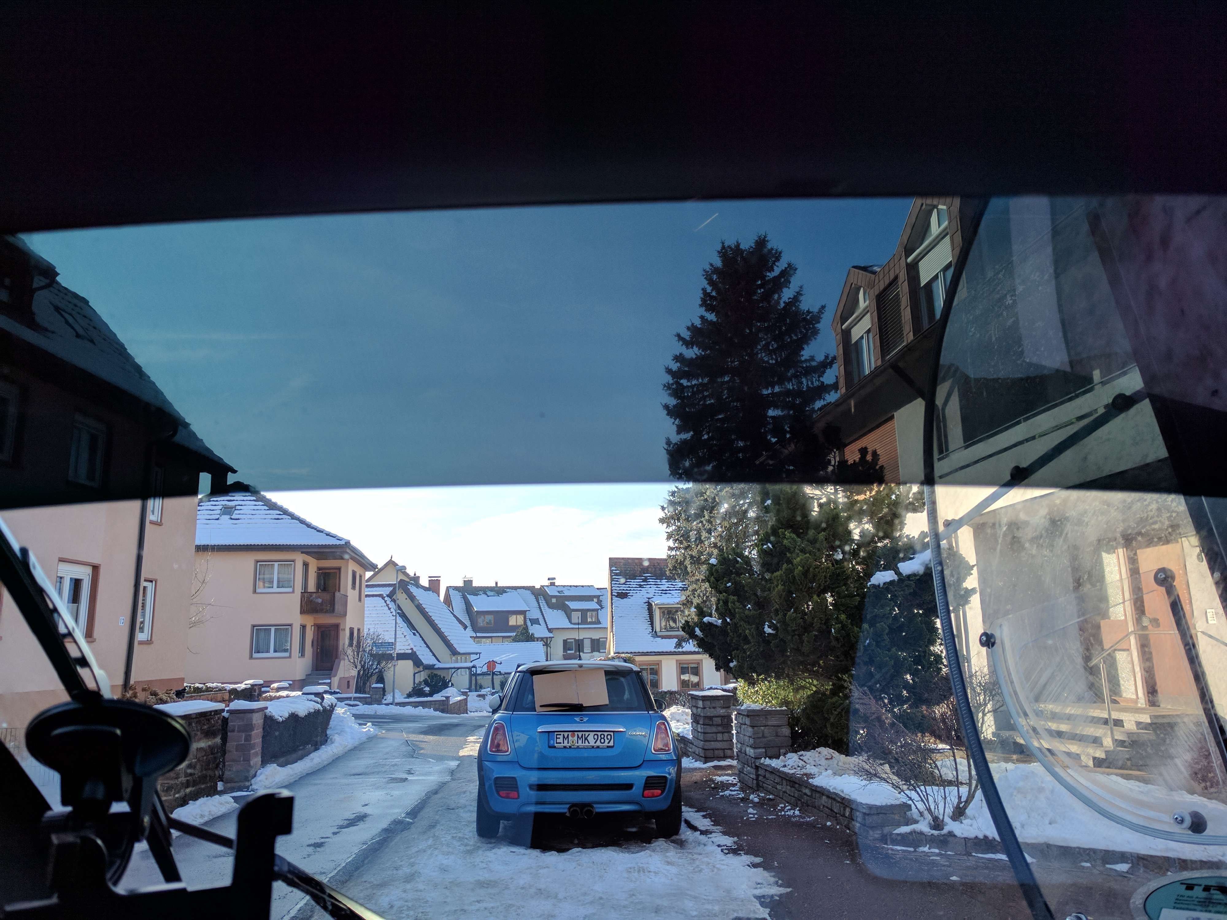 Ich muss dafür meiner Twizyinnenverkleidung maltretieren, hab dann eine Hälfte der Blende standig in den Haaren und den Rest ständig im Blickfeld.