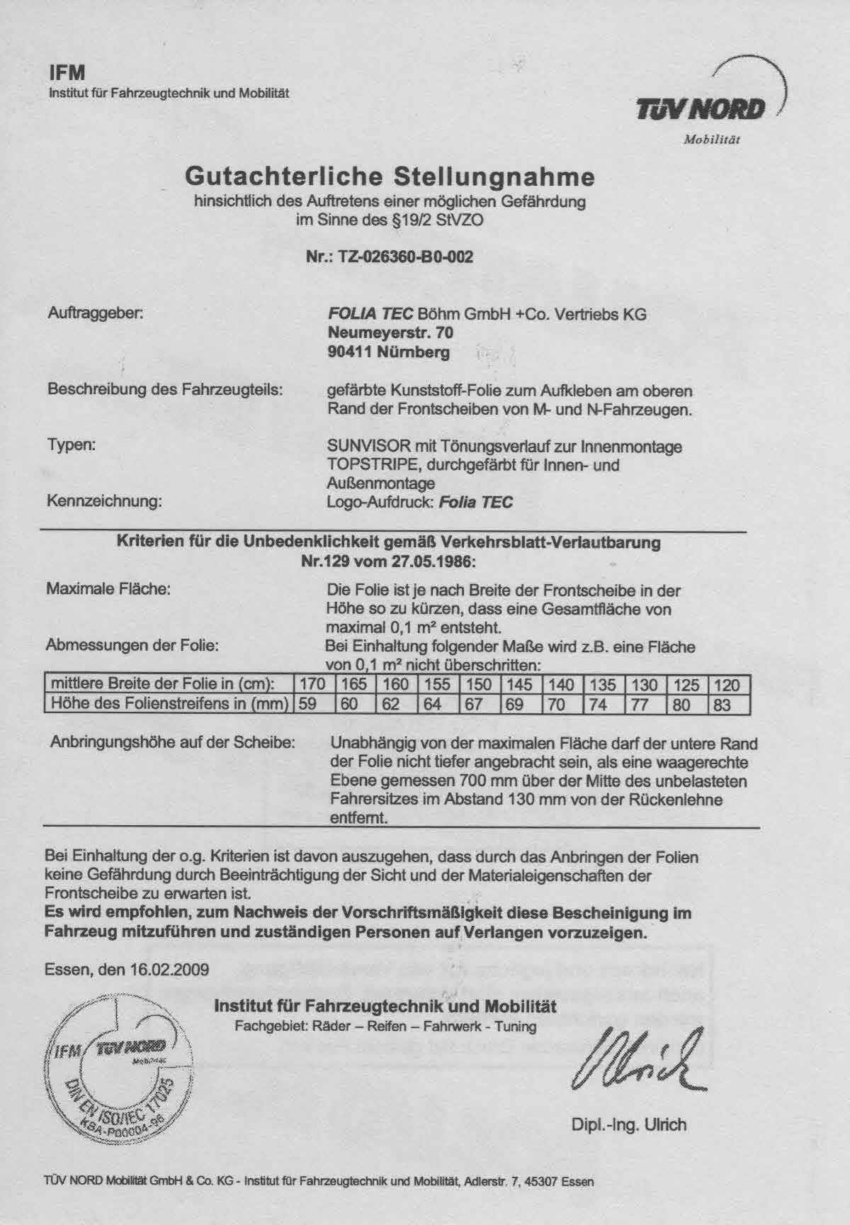 Steht alles wunderbar im zugehörigen Gutachten, so man eins für seine Folie bekommen hat....