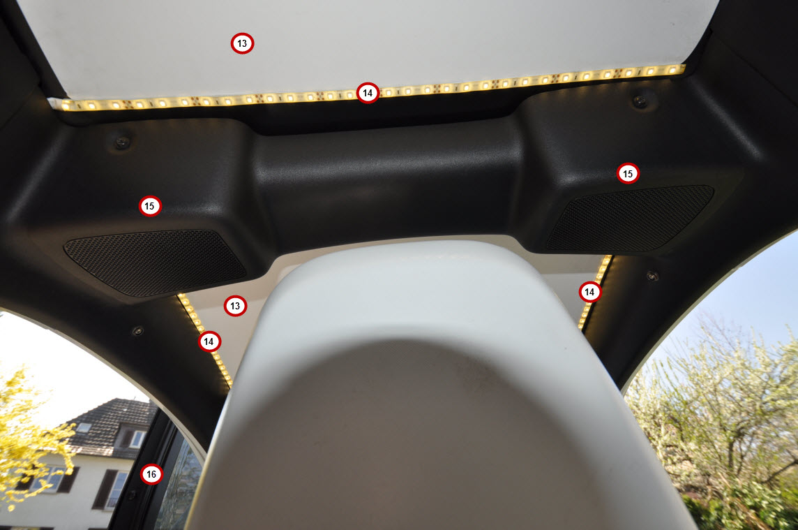 13.) Weiße Dachfolie für vorne und hinten macht den Twizy innen freundlicher und größer.