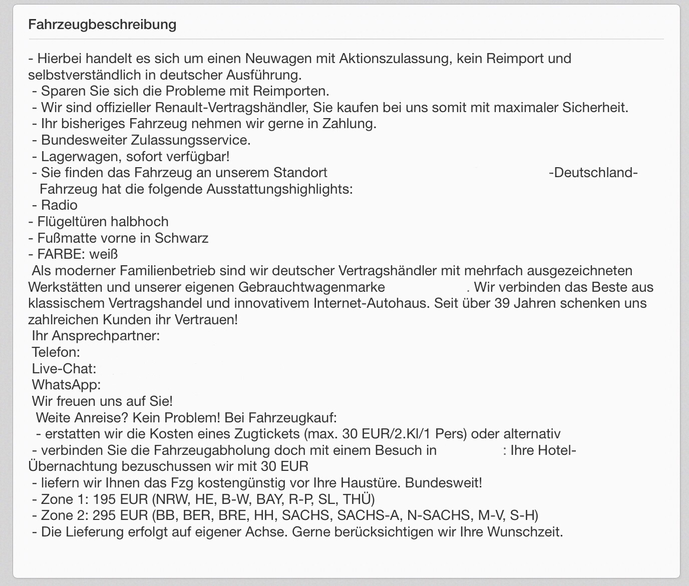 letzter Satz " die Lieferung erfolgt auf eigener Achse"...