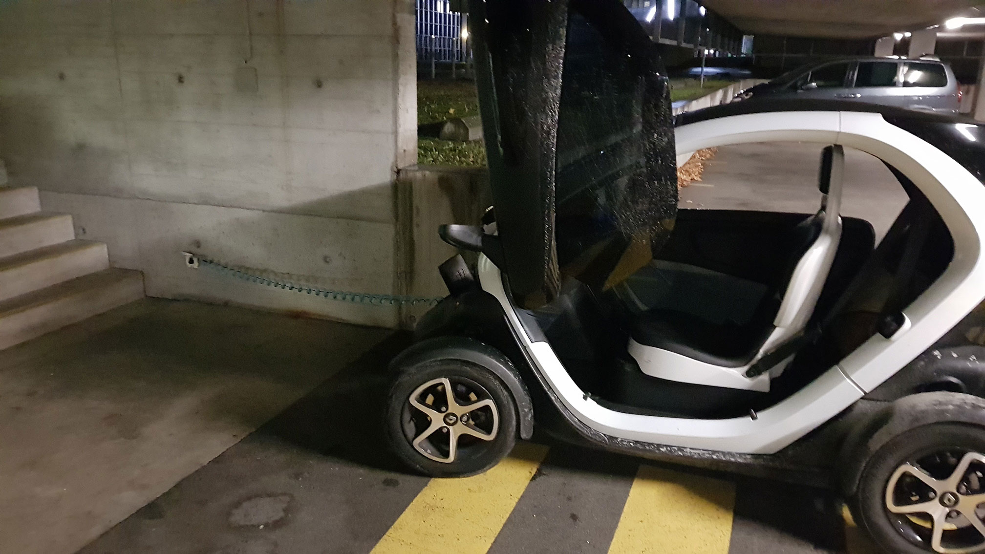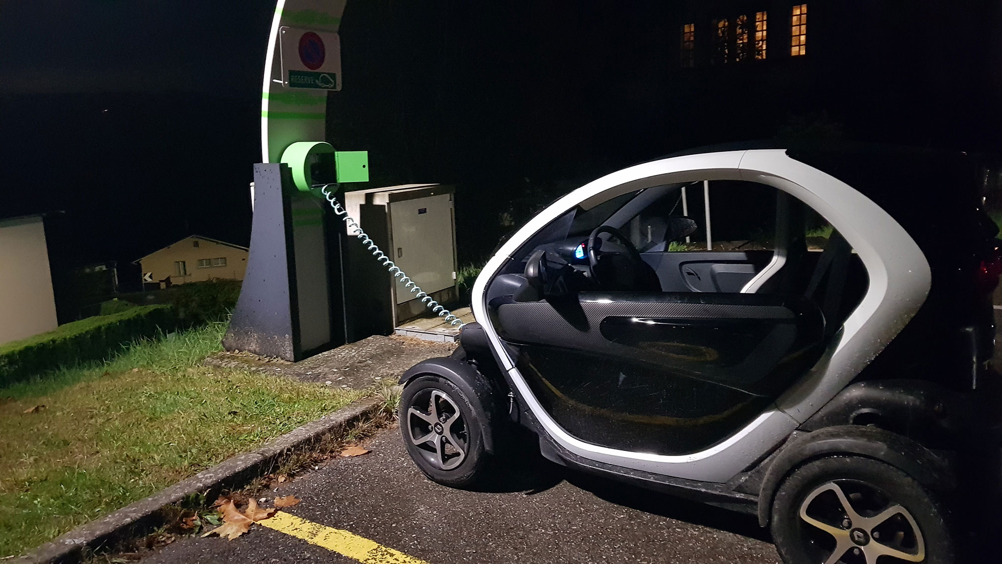 Ein Lader für Wohnmobile und Evs. Als ich nach 60min zurück kam um Ladung zu checken waren die beiden Wohnmobile dunkel. Sicherung raus! Twizy hat nur 2% geladen und hat noch 7km Reichweite!!! Was nun?
