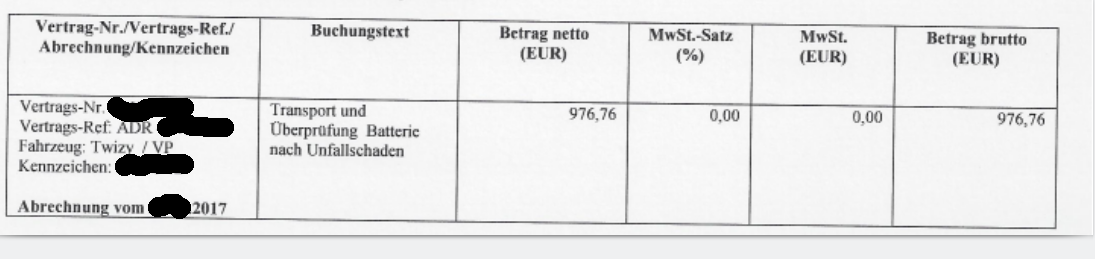 Ich kenne einen Fall da hat der Gutachter die Akkuüberprüfungskosten nicht im Gutachten aufgelistet. Die RCL hat die 700 EUR dann vom Twizy Eigentümer verlangt.