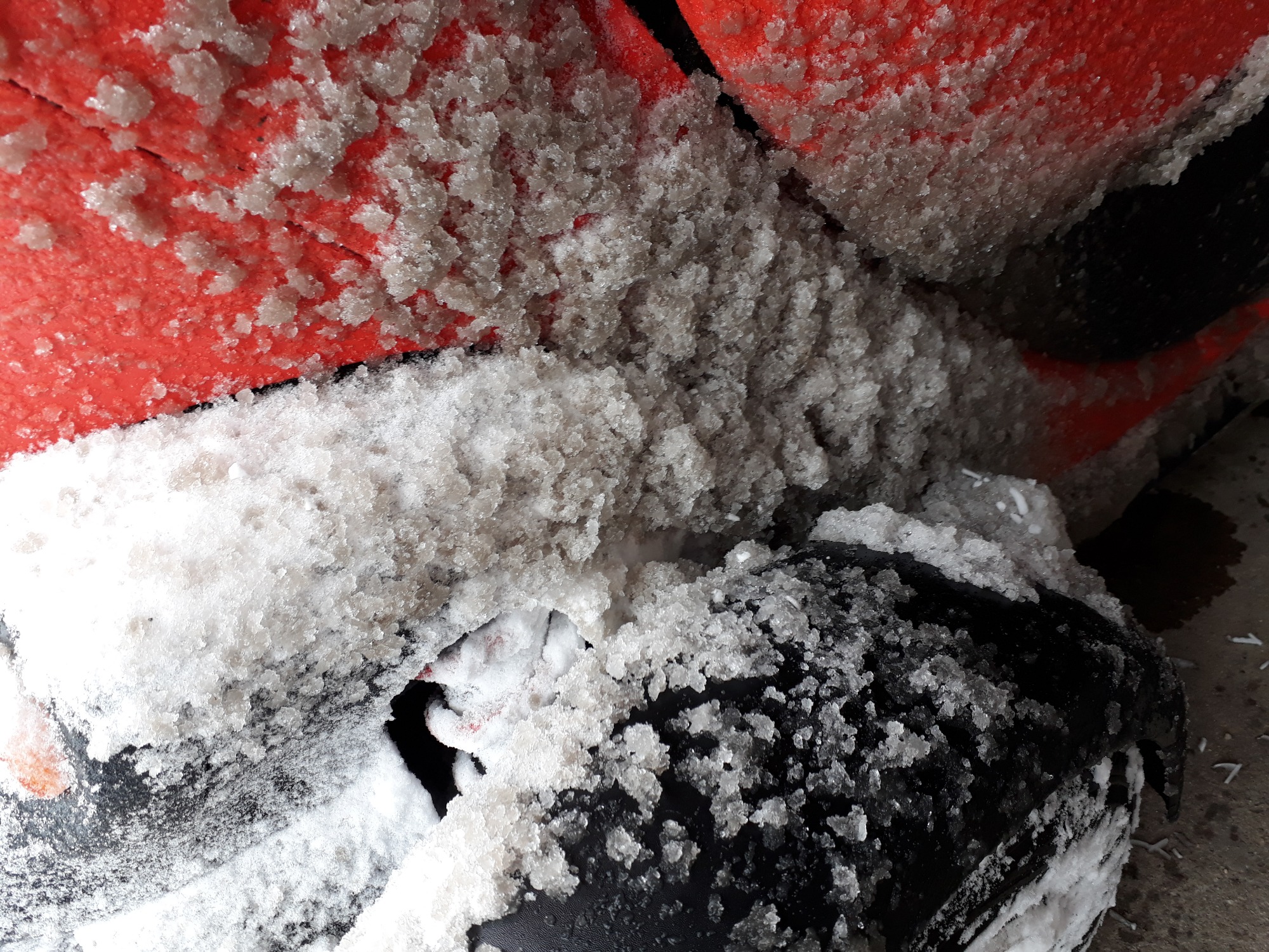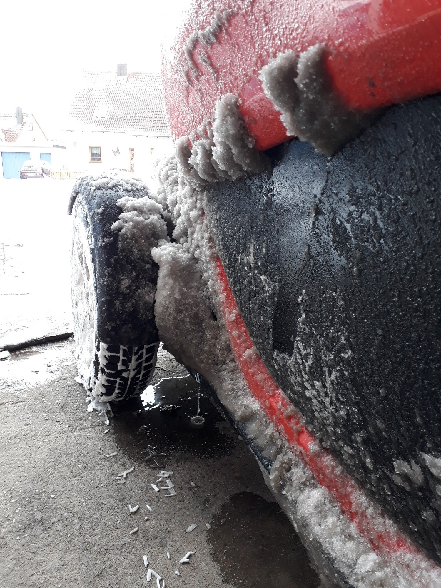 Deshalb hat einer mal einen Schneeschieber an den T. montiert. Irgendwo hier sind noch die Bilder.