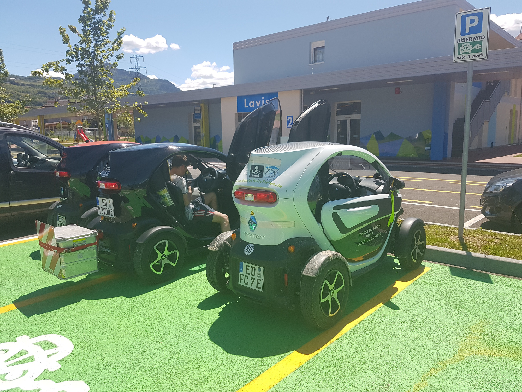 Nach näherem Umsehen konnten wir jedoch die Twizys an einer Schuko laden, was uns jedoch mehrere Stunden gekostet hat.