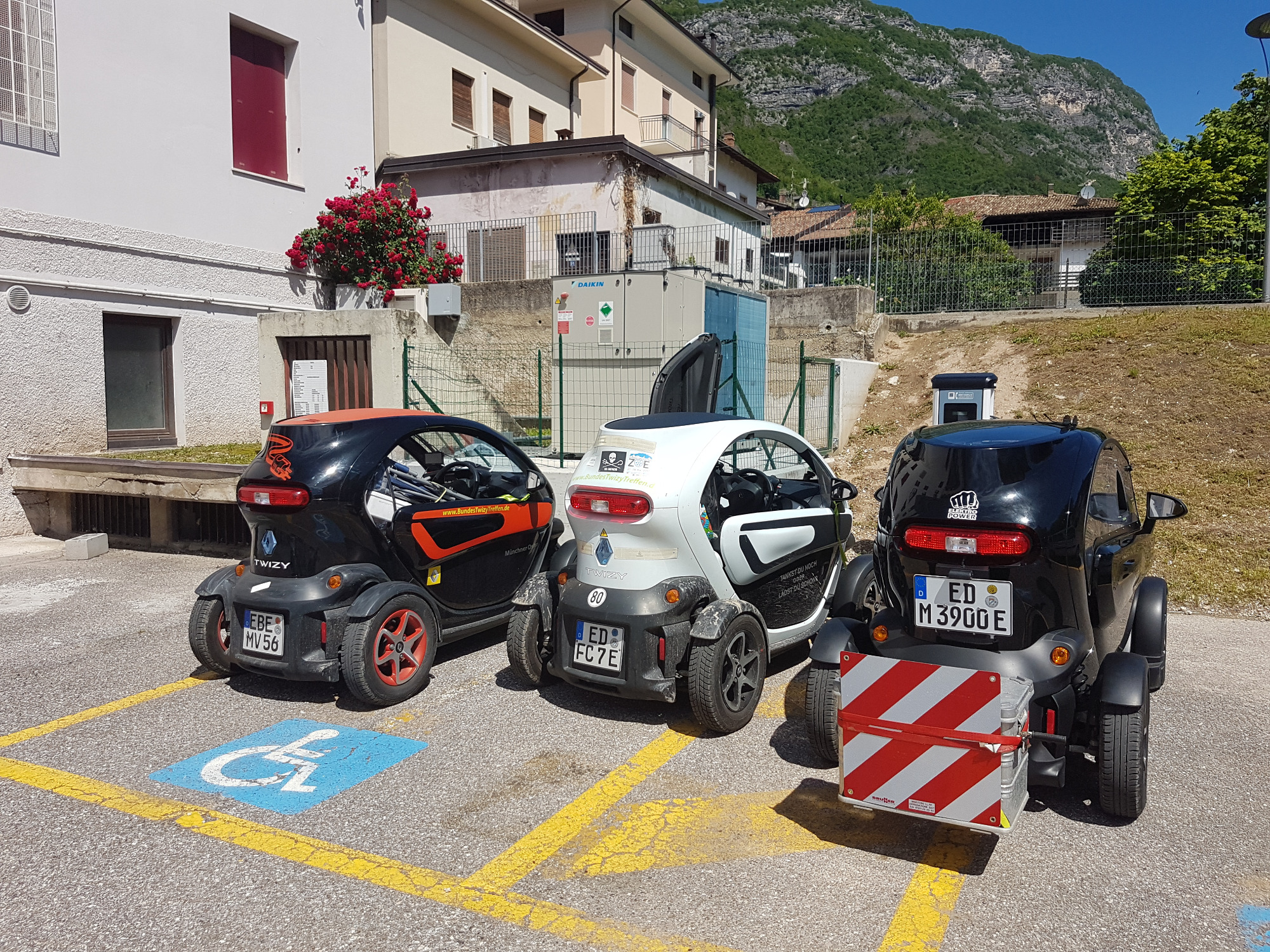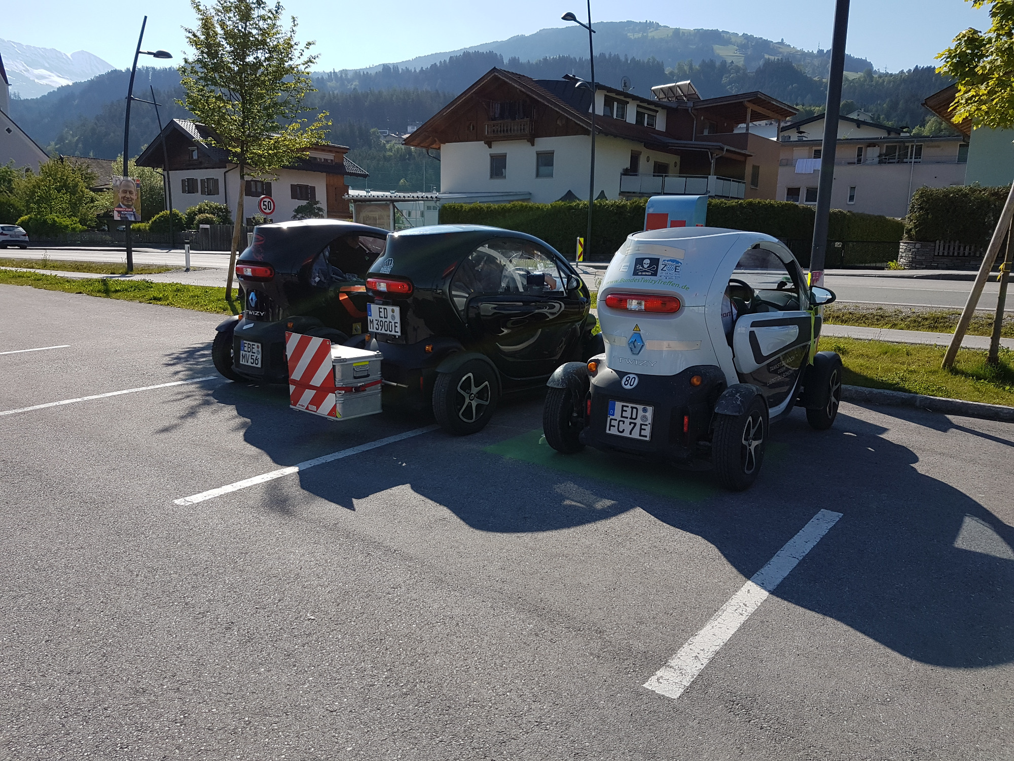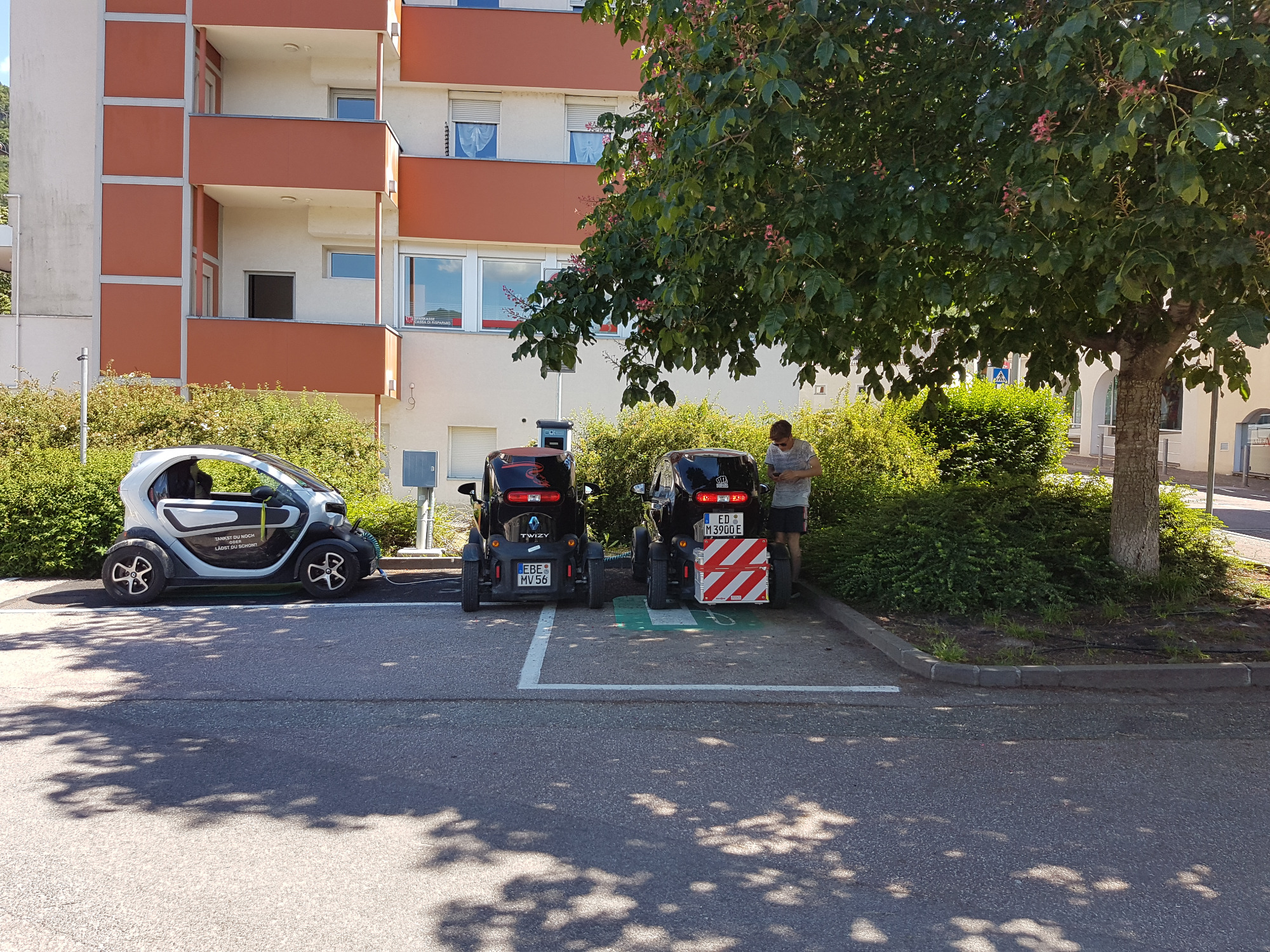 Laden an Privathäusern ist mit 3 Twizys so eine Sache.