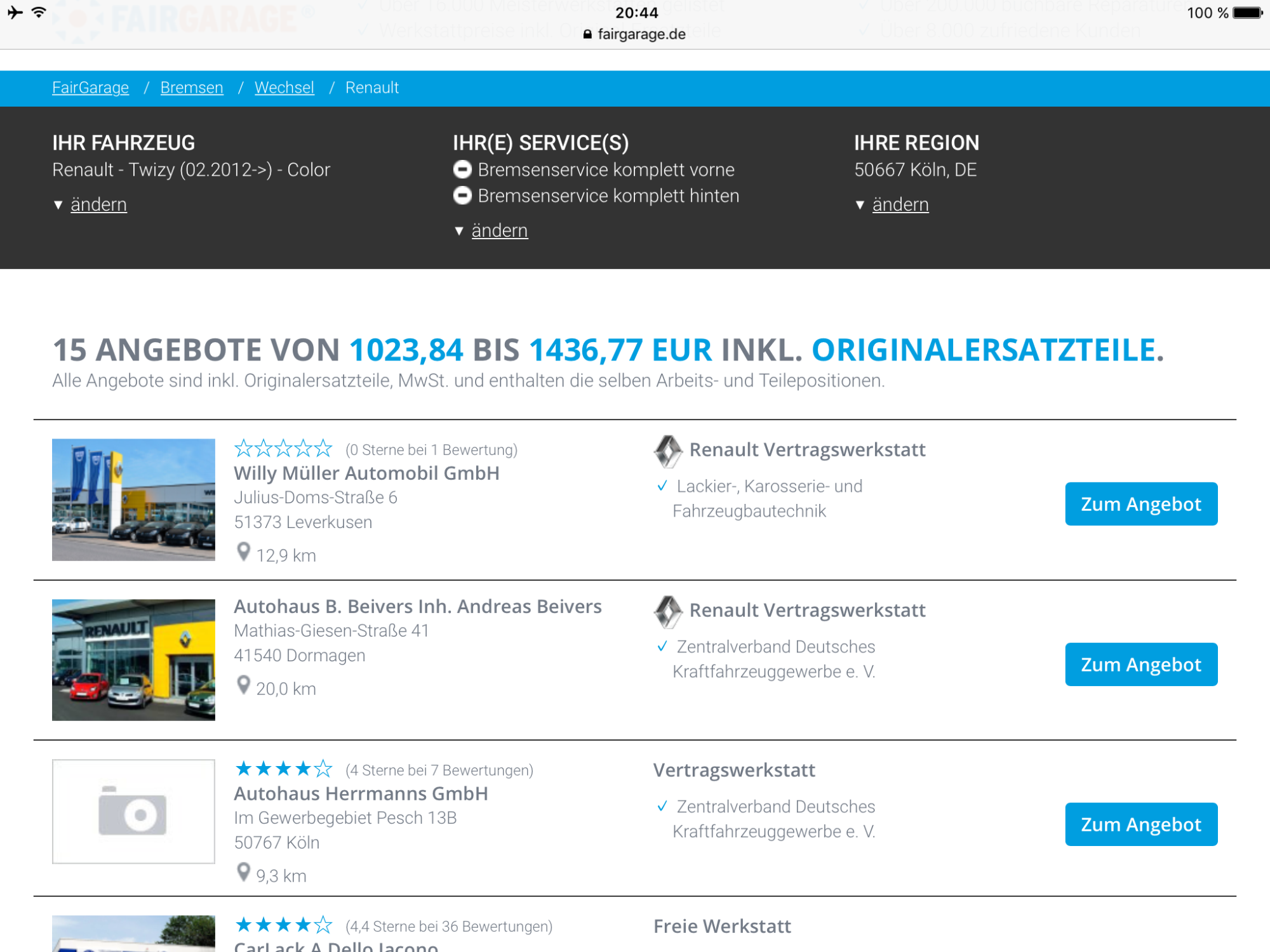 Der Kosten der Bremsenreparatur war bekannt (und wurde weitgehend eingehalten), aber hinterher wird gemault.