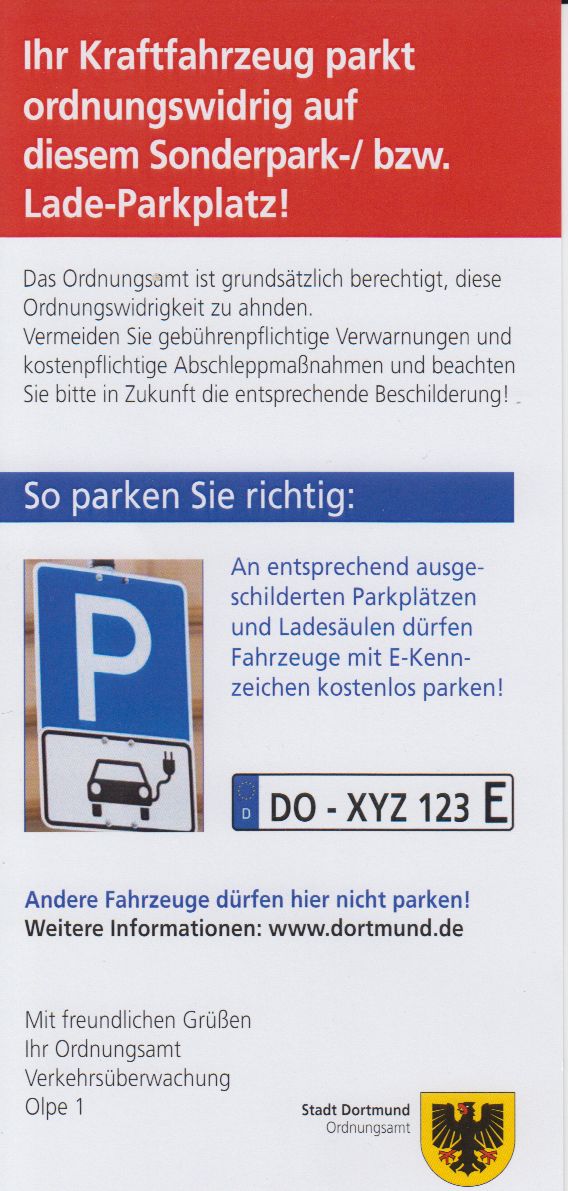 D.h. ich (ladend, aber ohne E-Kennzeichen) dürfte dort abgeschleppt werden, zu Gunsten eines Dauerparkers mit E-Kennzeichen.