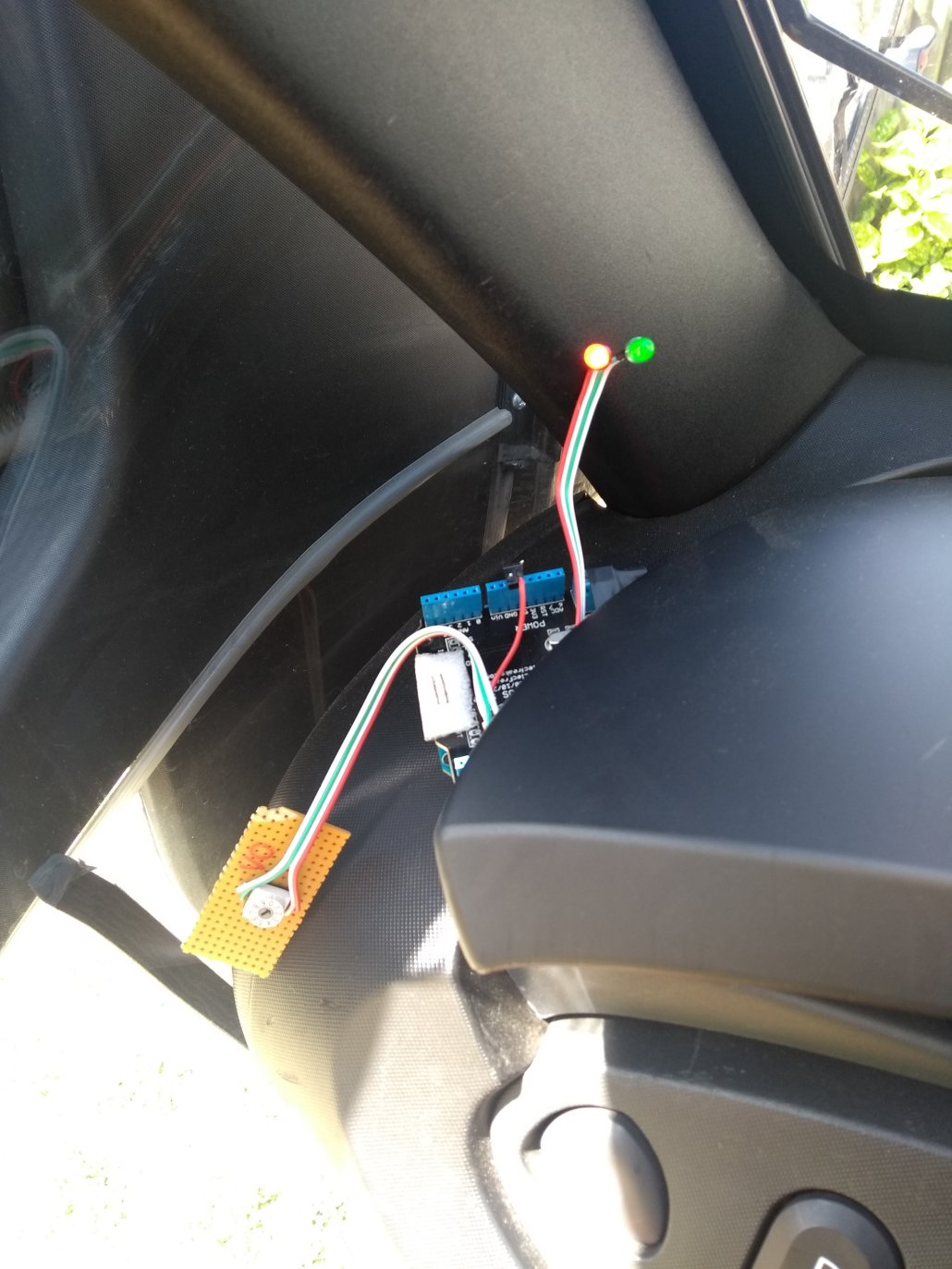 Zwei Löcher für die LEDs, wo er sie dann gut sehen kann und außer einem Schlitz für das OBD Kabel kann das Ding zu.