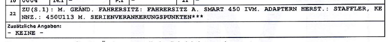 im Moment trägt der TÜV Trier den Sitz noch ein, es gibt noch zwei anderen Wege über eine den § 70 STVZO ( Import Fahrzeuge Umbauten )