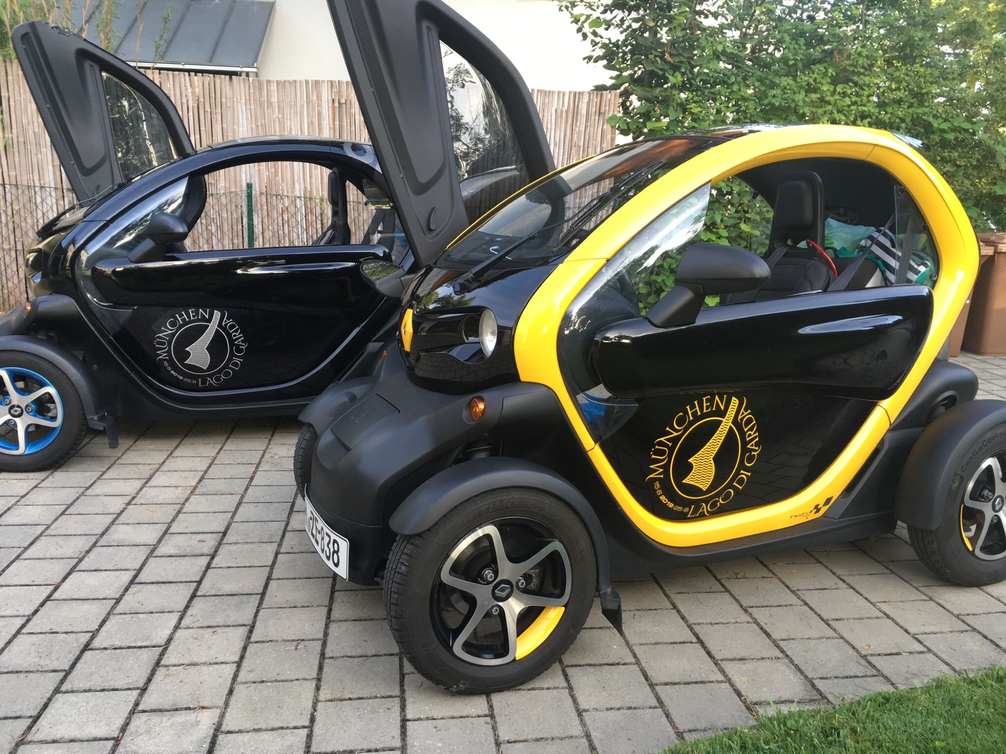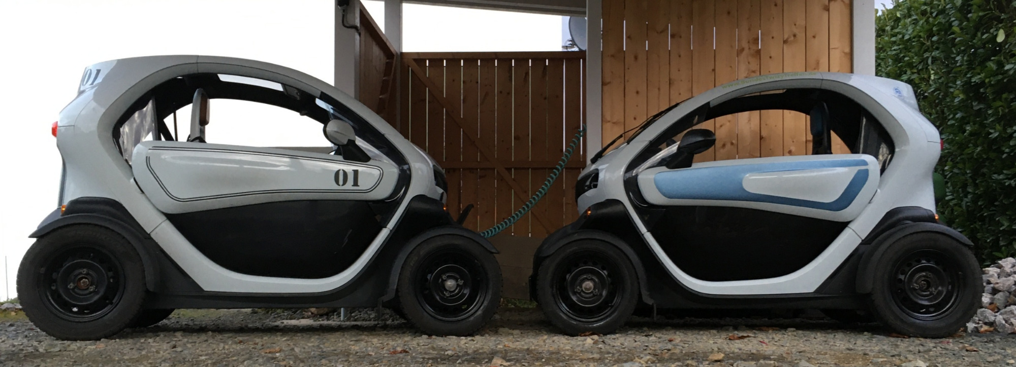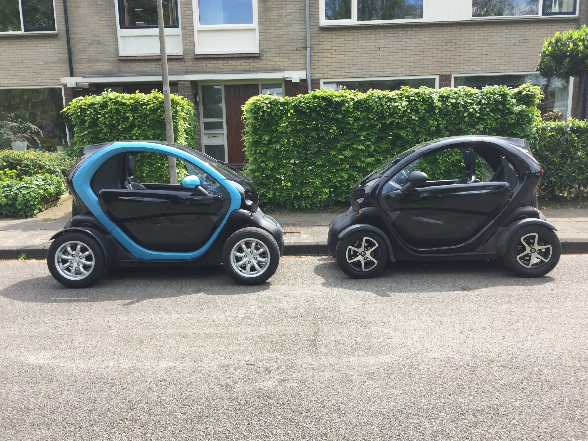 Since 2016 we have two Twizy's. My wife has an original 2013 two seater, I drive /mod the 2016 Cargo. Here an old photo experimenting with some wider wheels on mine.