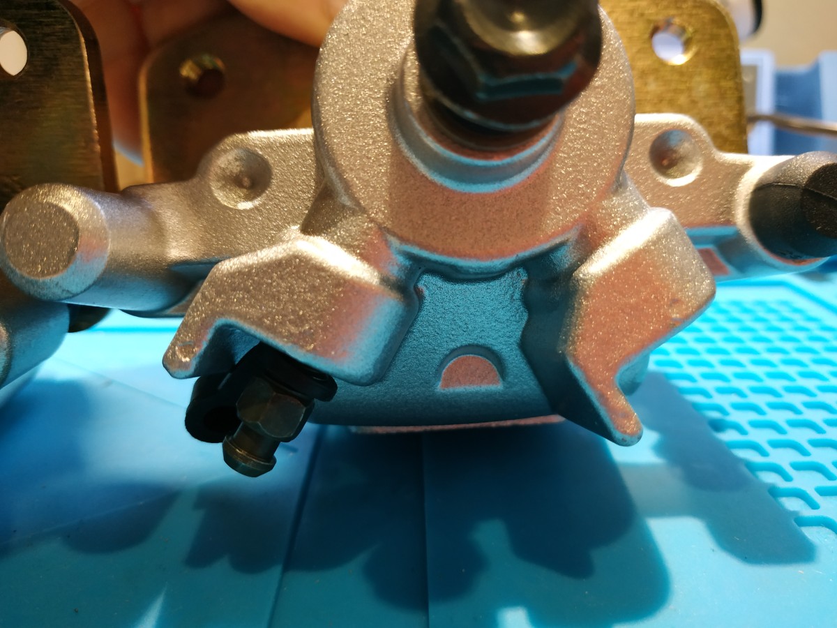 Daraus zu schließen das man die Bremsezange in beliebiger Lage montieren kann halte ich für falsch und fürchte das daraus Probleme resultieren die bei längerem Gebrauch größer werden.