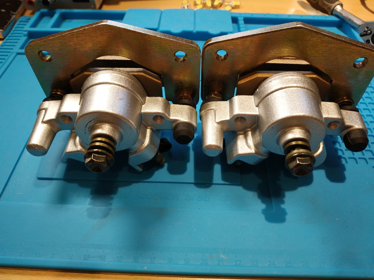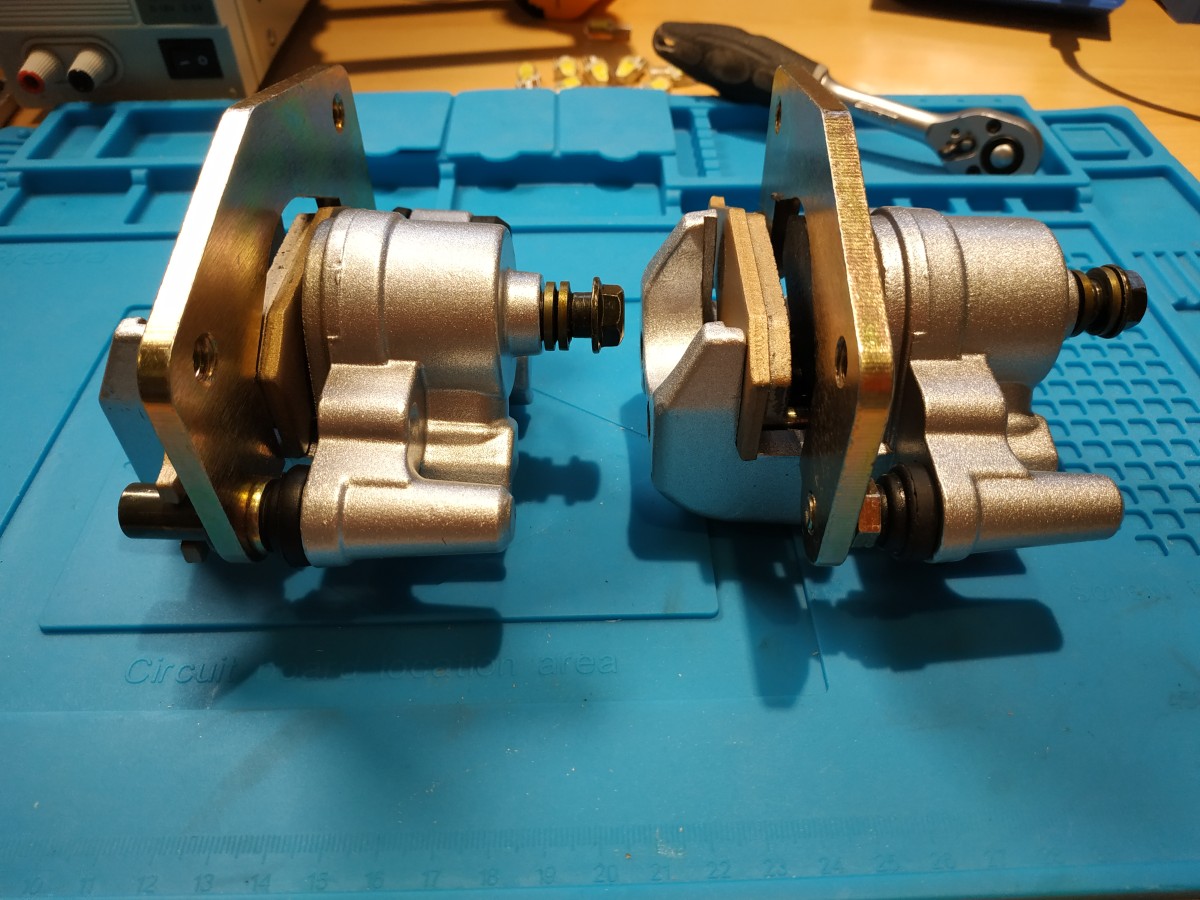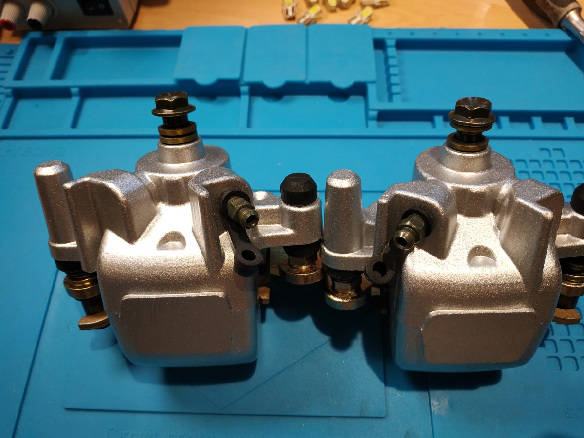 B: Sie wie ich (im Video von Hessi gezeigt) umbauen (nur Teile von einem zum anderen tauschen). Dann Hast du: Beidseitig Entlüftung oben (richtig), Und links auch einen komplett richtigen Sattel (Also identisch zu Original Renault 2012) und rechts die Führung verkehrt, aber Entlüftungen richtig.
