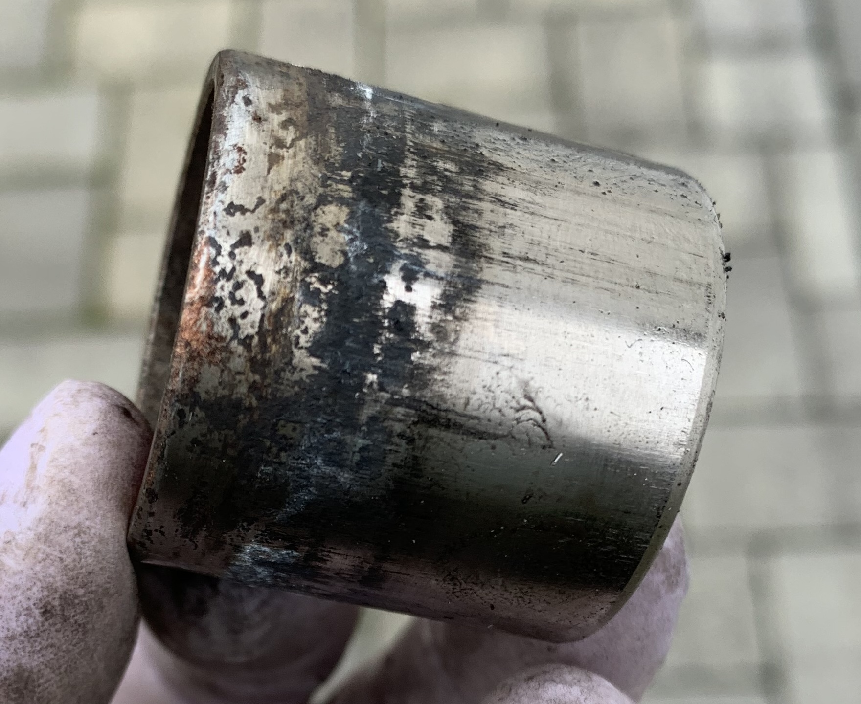 Deutlich sind Ablagerungen und kleine Beschädigungen am Kolben sichtbar. Nachdem Rausdrücken ist selbst mir klar, warum sich der Kolben kaum noch bewegen ließ.