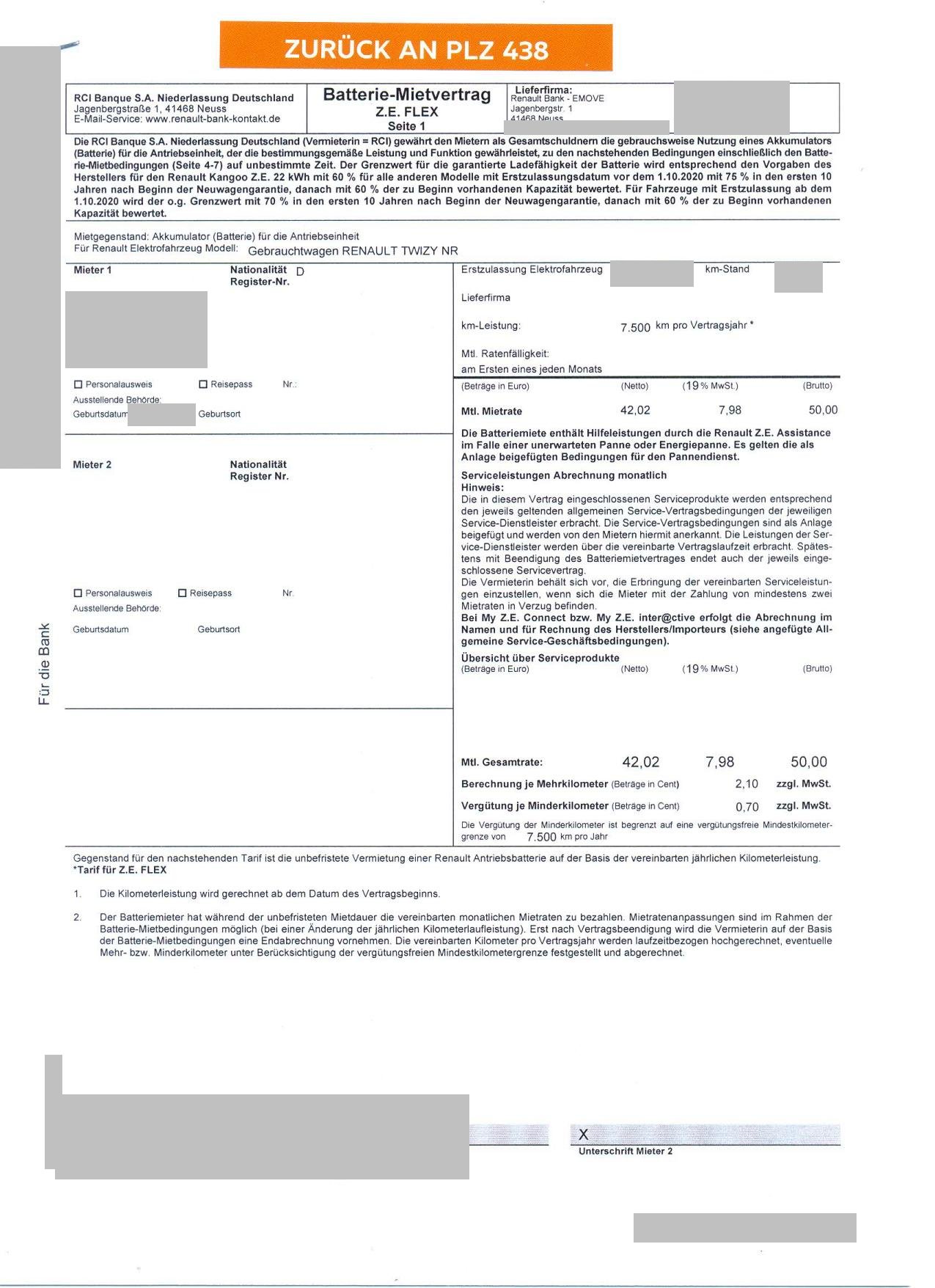 newbie schrieb: Hast Du vielleicht auch die "Allgemeine Batterie-Mietbedingungen (unbefristeter Mietvertrag)" - also das Kleingedruckte dazu?