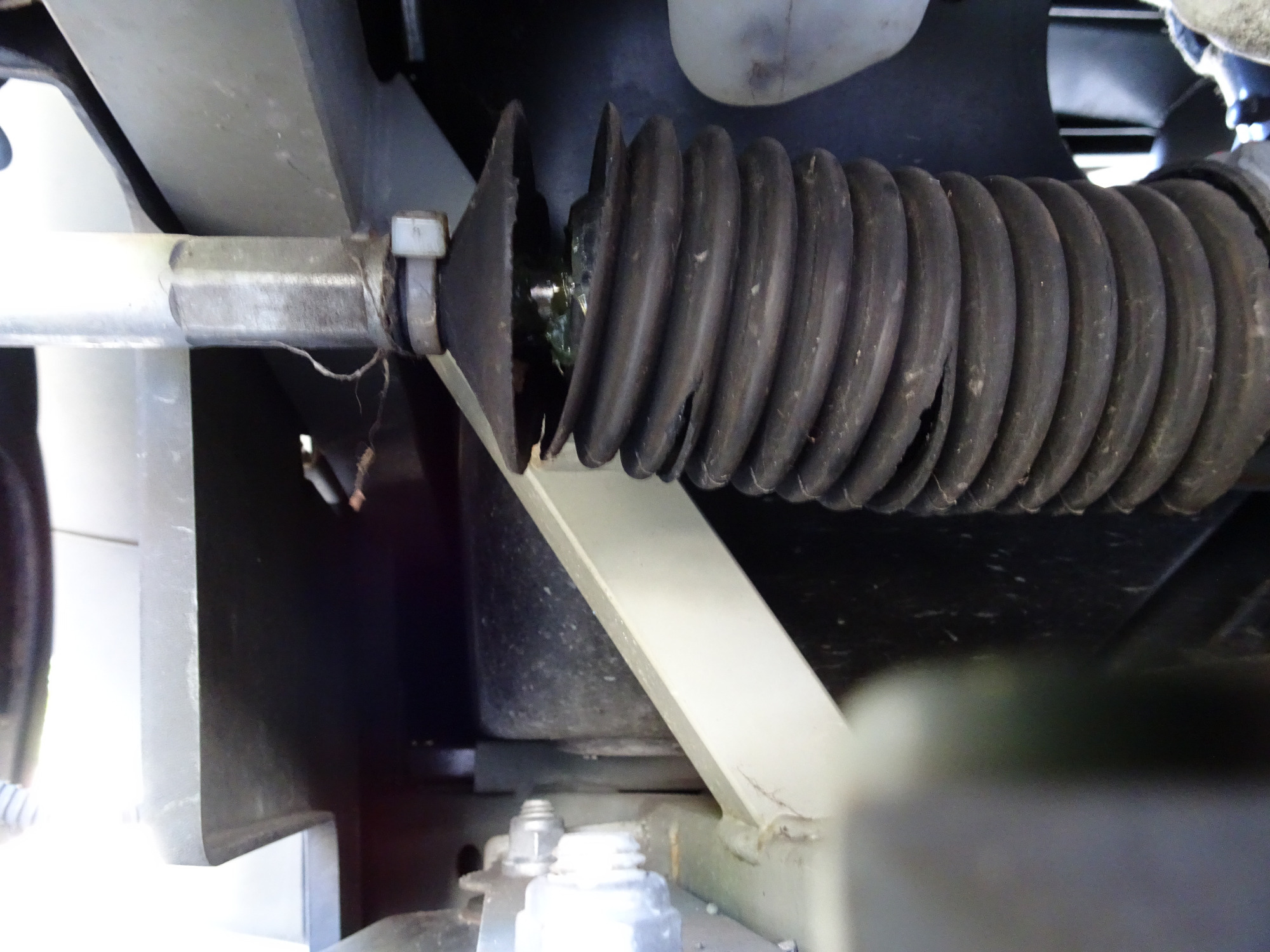 Searching for the solution of the first problem, I noticed that the two rubber parts (I don't know how are called) of the stearing bar are demaged.
