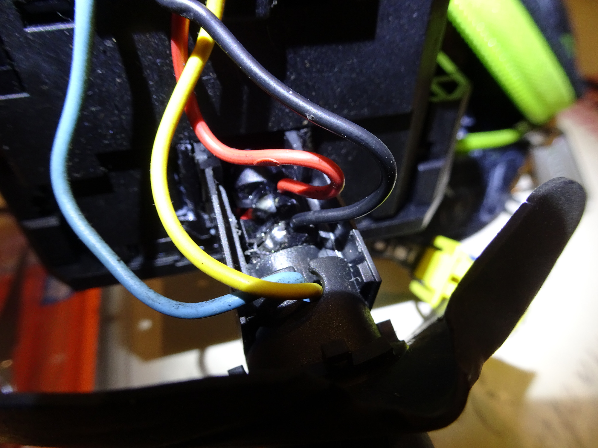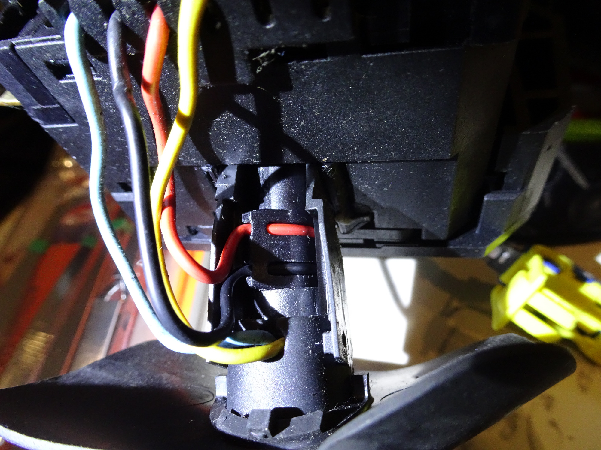 I took much more time to remove the peace of the black wire cutted and to place the black wire in its original seat (around the lever).