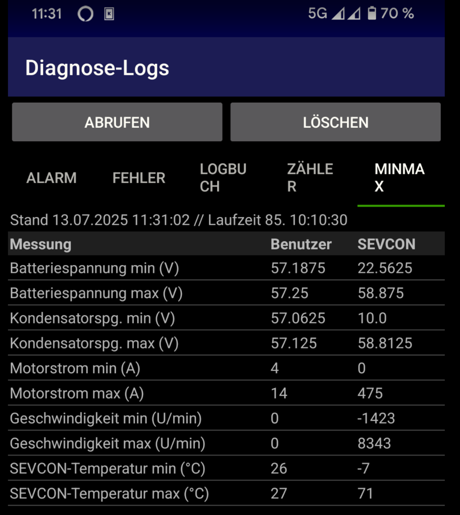 So wie ich das diagnostizieren kann wird, laut OVMS, die SevCon zu warm.