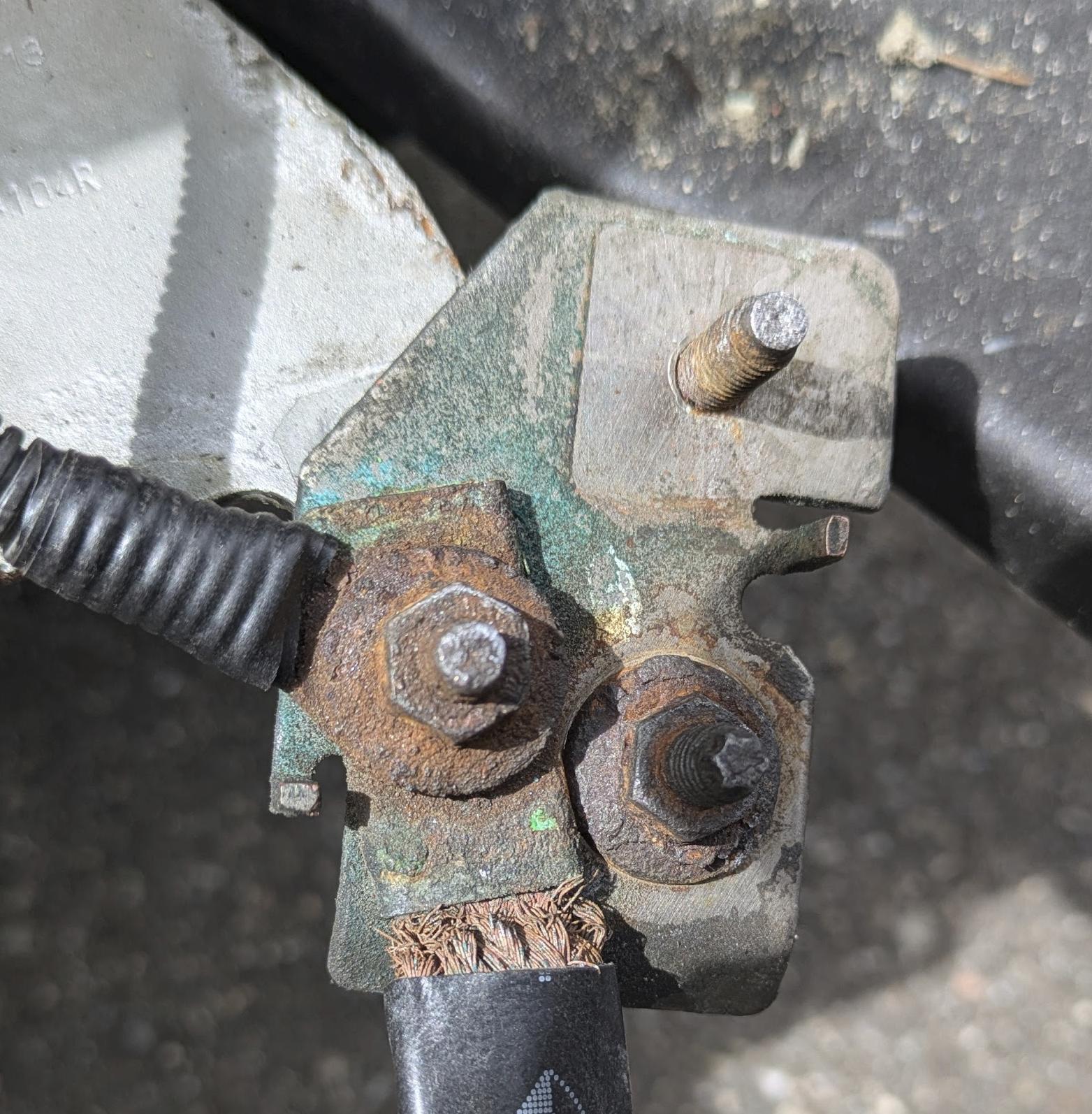 und die Masse is echt verrottet, und ich hab den Bolzen am Masse band abgerissen