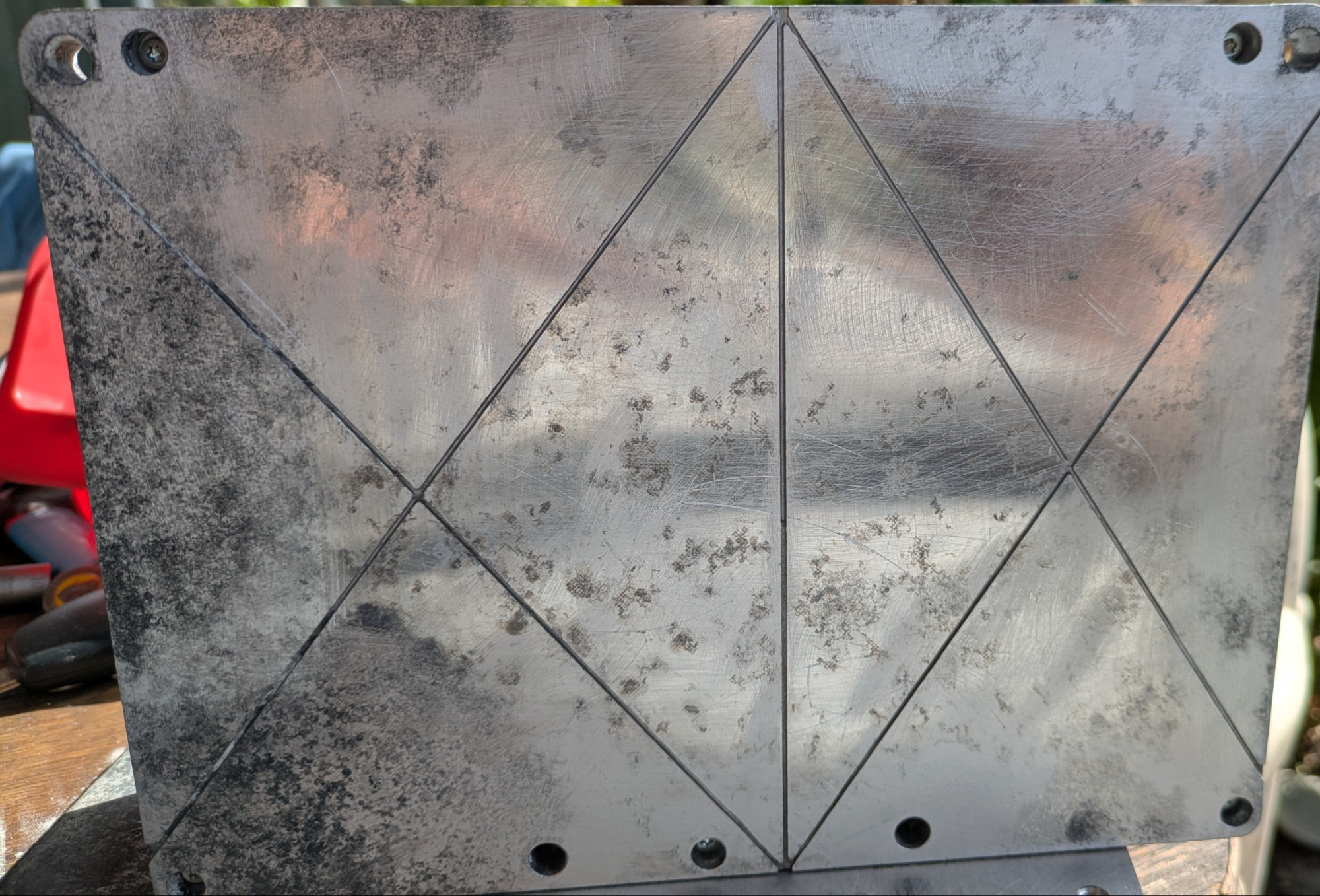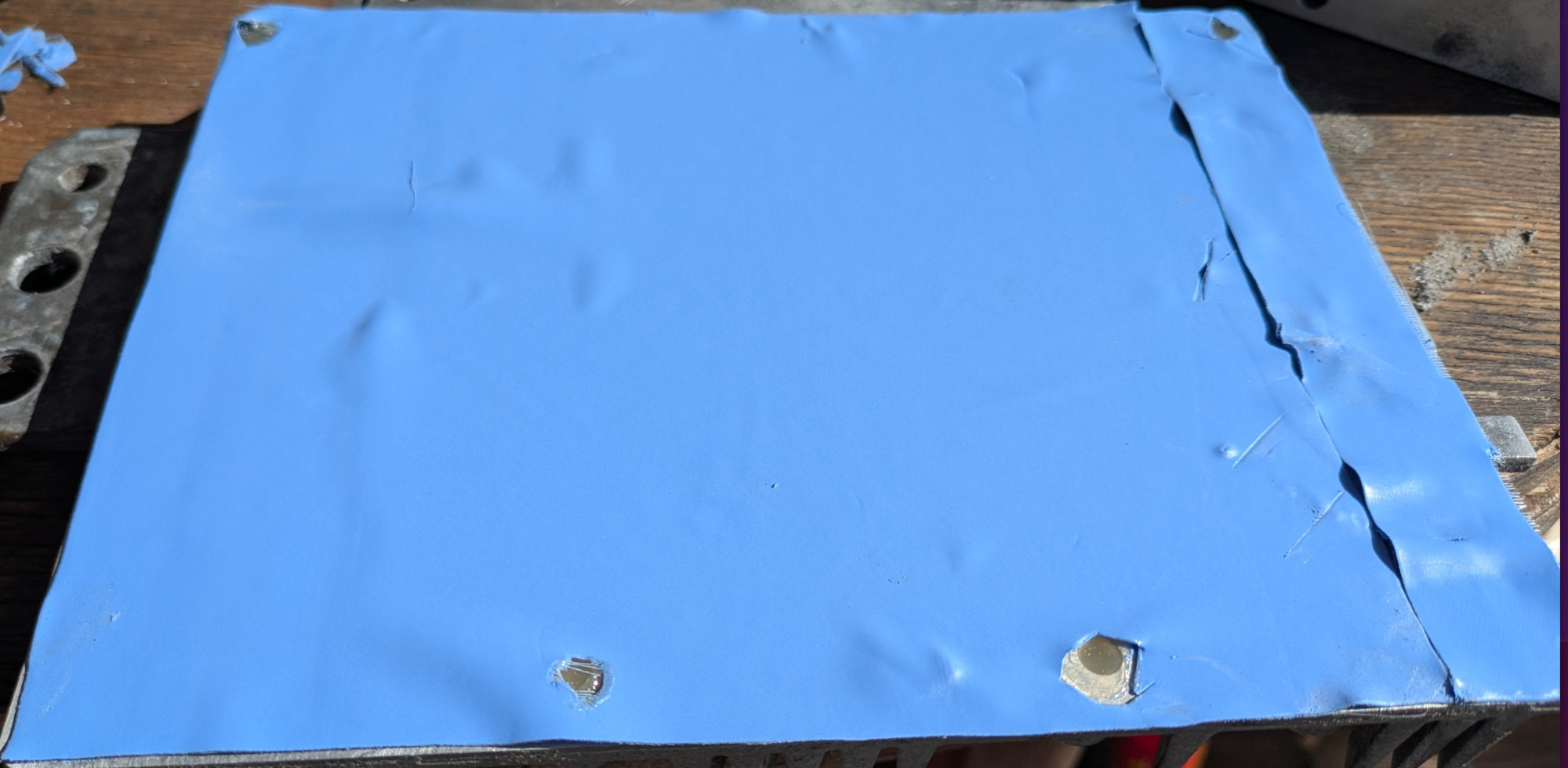 - pinkes Pad mit einem 200x200x0.5mm PC silicon cooling Pad ersetzt, kann man schoen auf 180x220mm scheiden