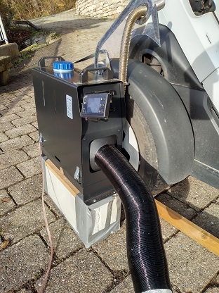100Eur Gesamtkosten, max 0,5L/h Diesel, mit einer Schraube fest fixiert und in nur 4 Sek komplett am Stück aus/eingebaut, Warmluft entweder nur Füße, oder oberer Innenraum komplett -je nach Position Warmluftschlauch. Kaum Platzverbrauch -meine beiden Kids betrifft der Platz nicht, und auch die habens so warm.